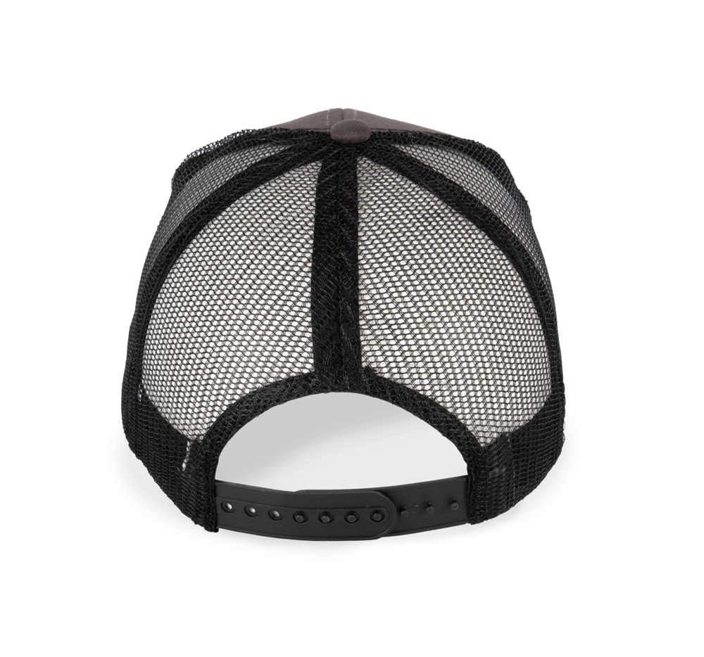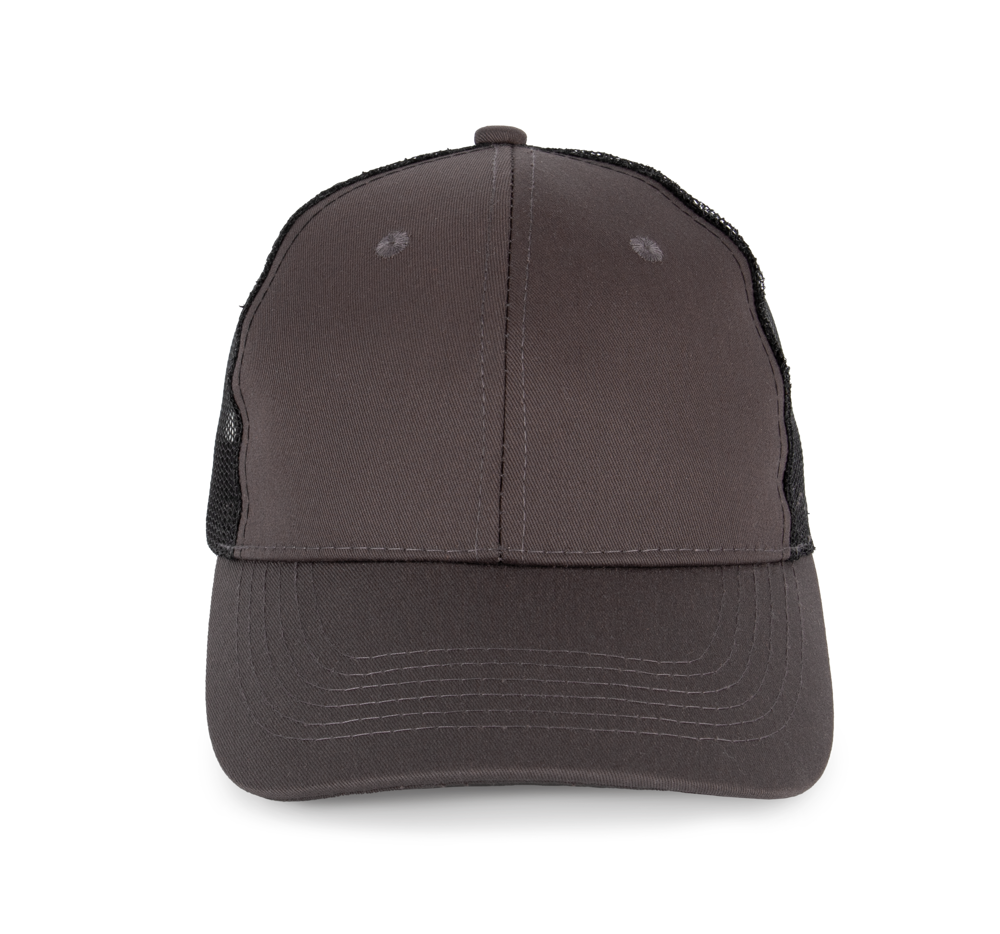 65% katoen / 35% polyester. Truckerpet met 6 panelen en zonneklep met half profiel en verstevigde ton-sur-ton voorpanelen.