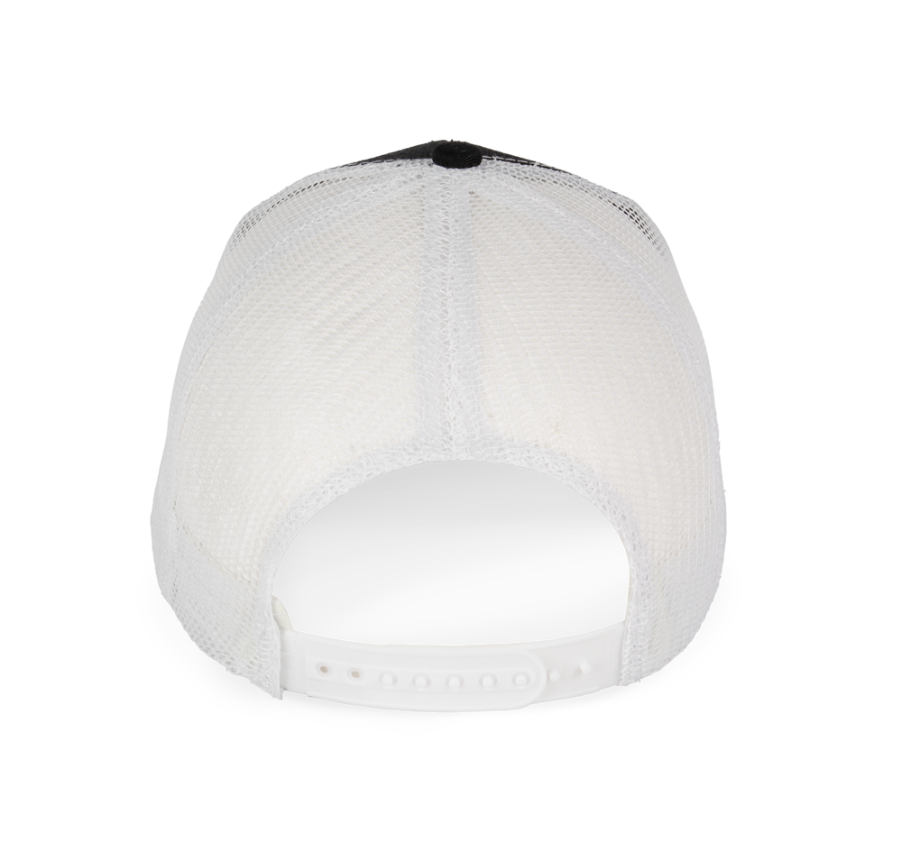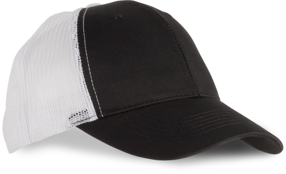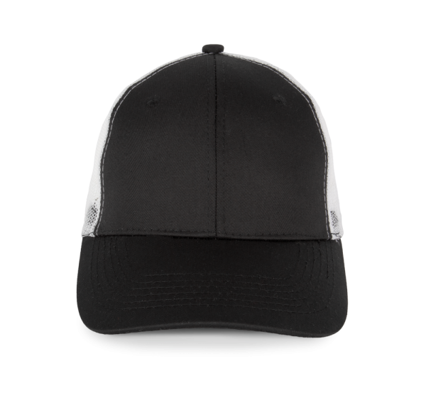 65% katoen / 35% polyester. Truckerpet met 6 panelen en zonneklep met half profiel en verstevigde ton-sur-ton voorpanelen.