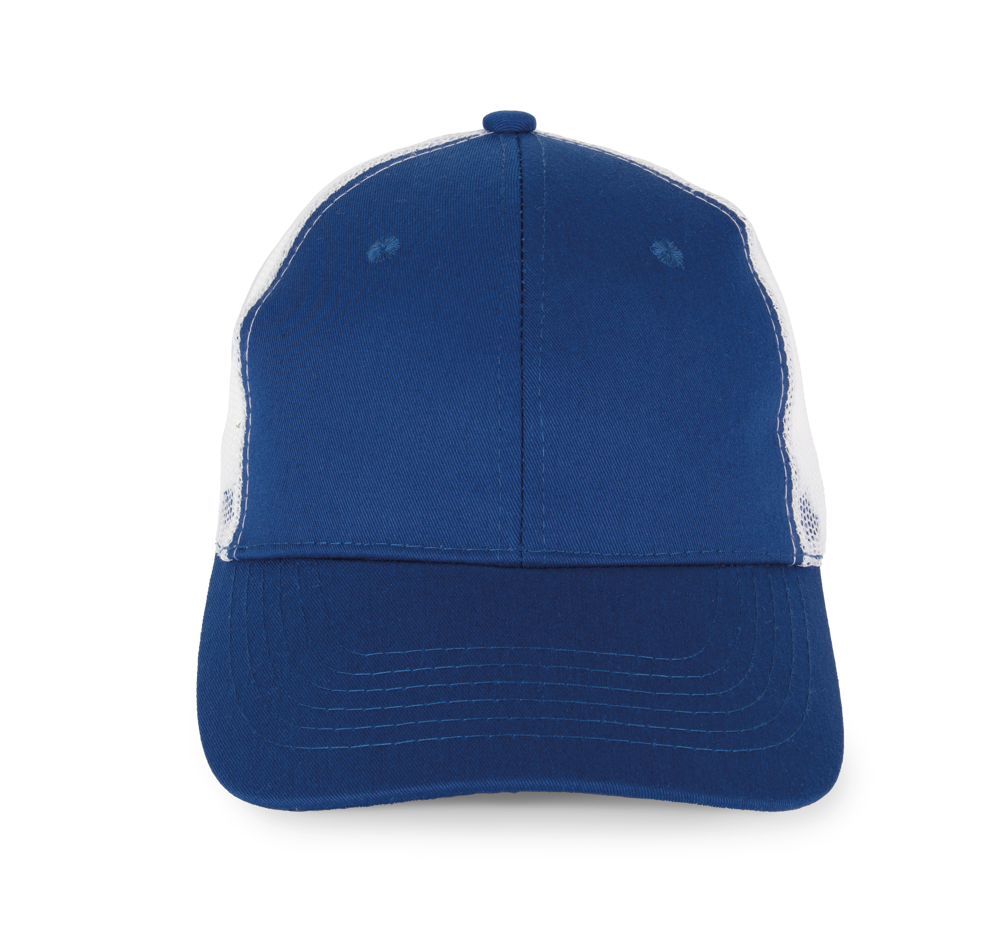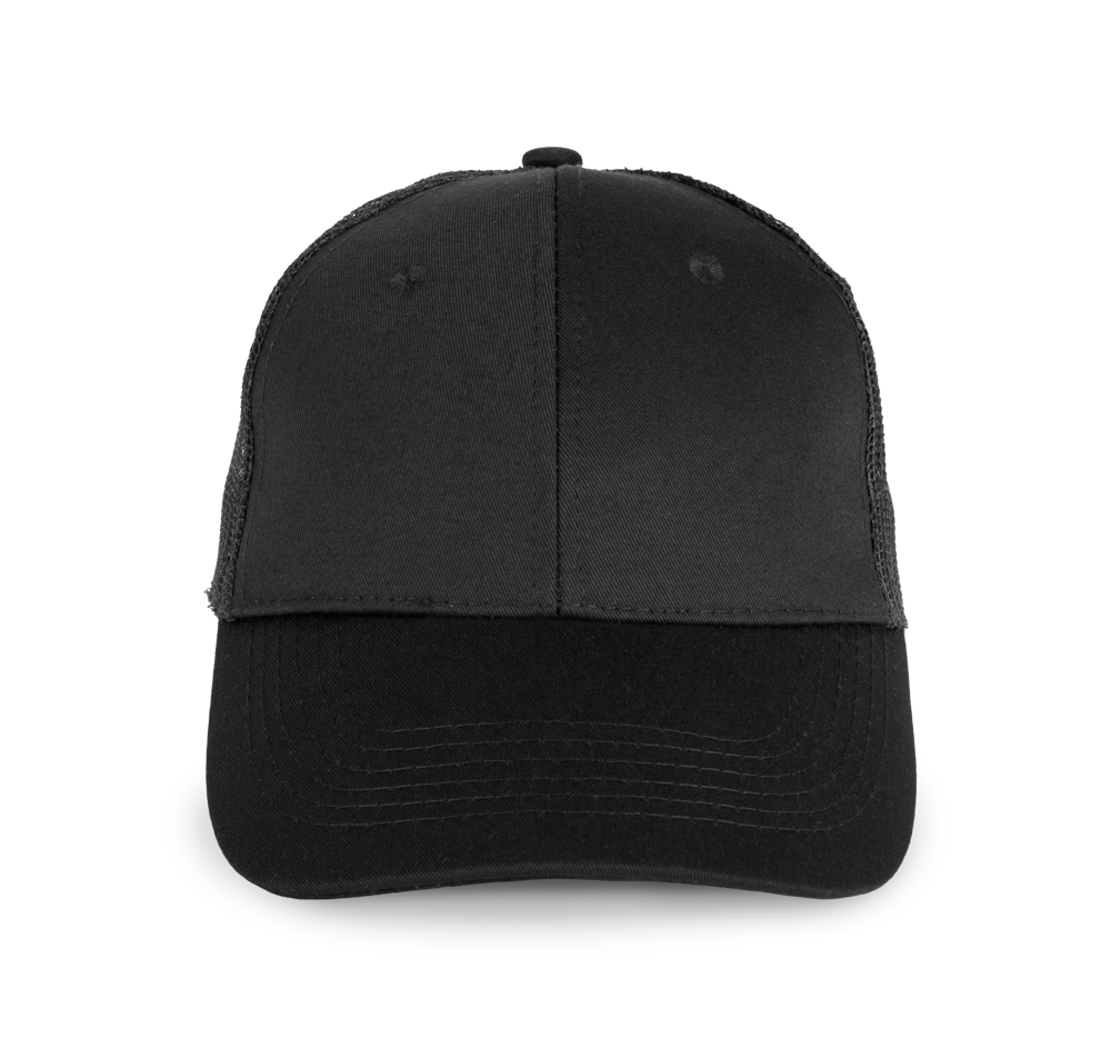 65% katoen / 35% polyester. Truckerpet met 6 panelen en zonneklep met half profiel en verstevigde ton-sur-ton voorpanelen.