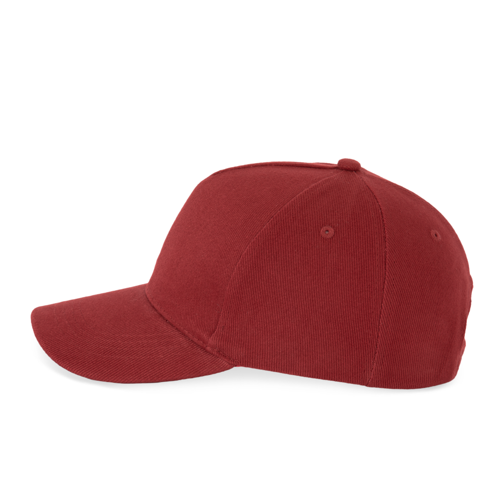 100% katoen. Dik gekamd katoen. Pet met 5 panelen. Sluiting aan de achterkant met metalen gesp.