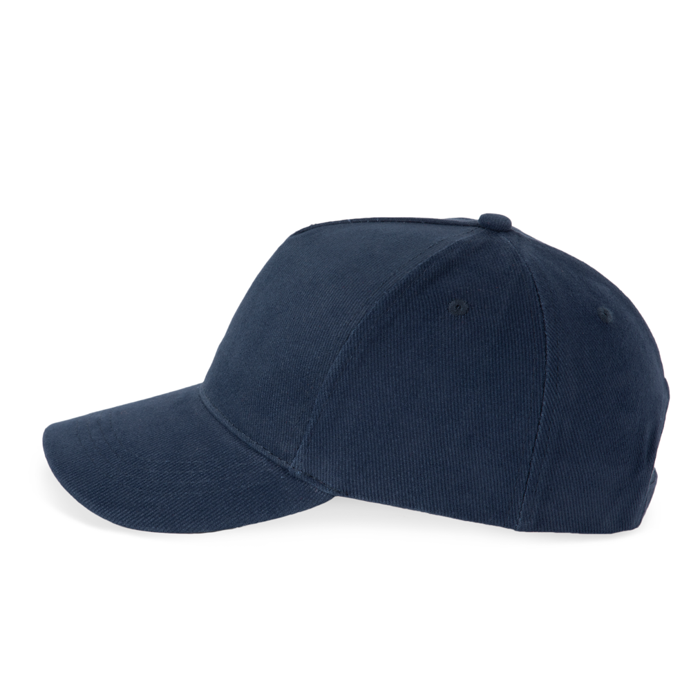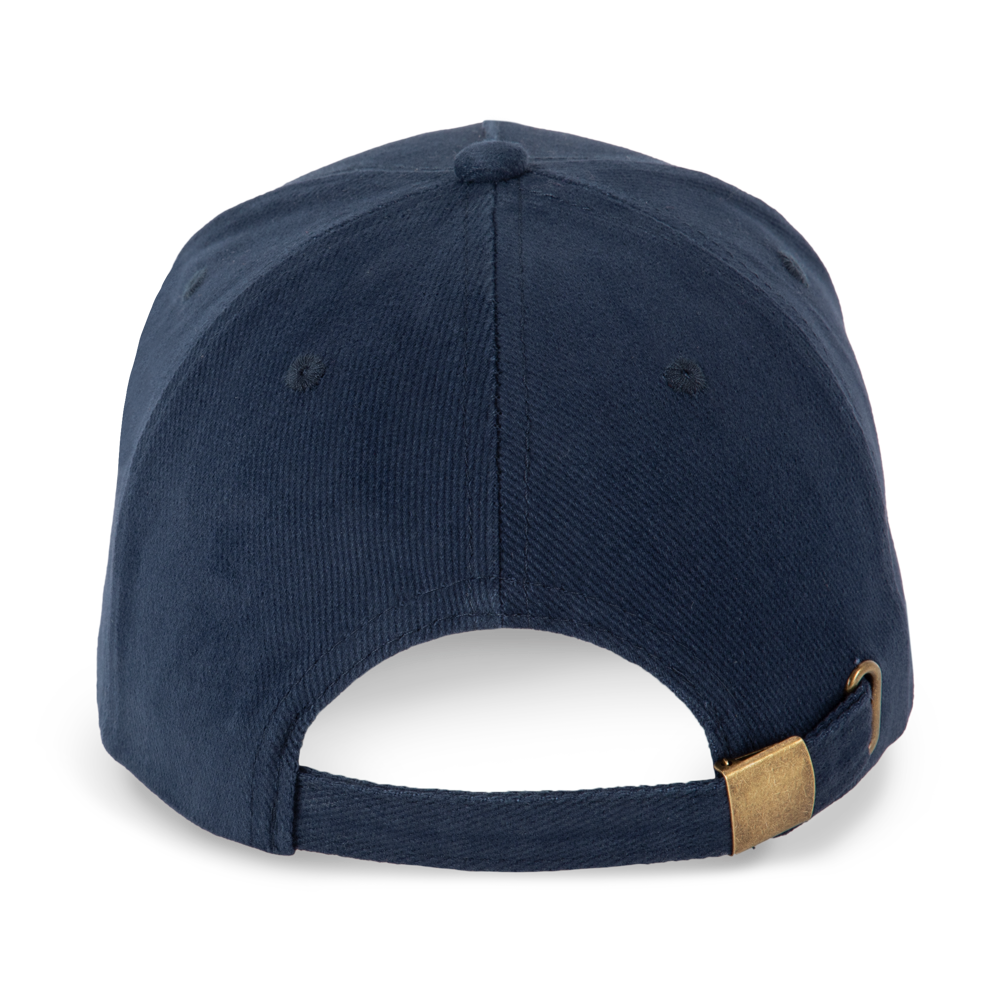 100% katoen. Dik gekamd katoen. Pet met 5 panelen. Sluiting aan de achterkant met metalen gesp.