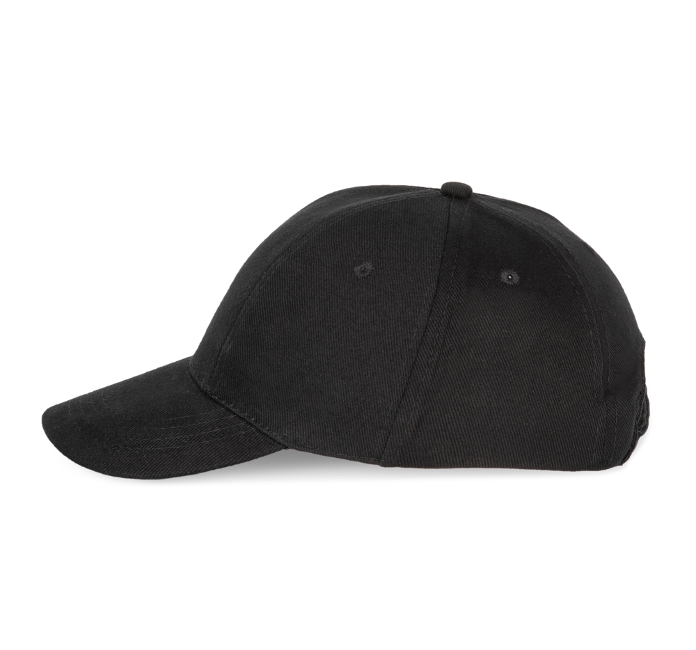 100% geborstelde zware katoen. 6 verstevigde panelen. Voorpaneel eenvoudig te bedrukken. Verstelbare metalen gesp-sluiting.