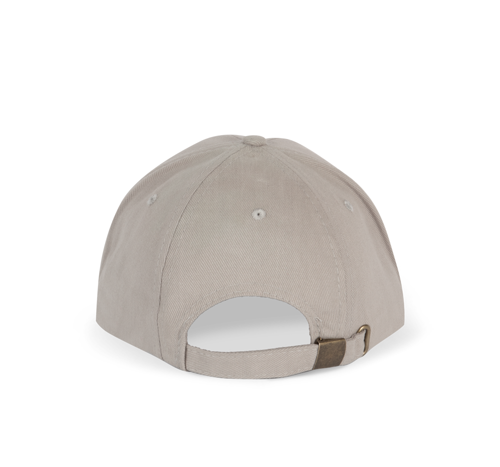 100% geborstelde zware katoen. 6 verstevigde panelen. Voorpaneel eenvoudig te bedrukken. Verstelbare metalen gesp-sluiting.