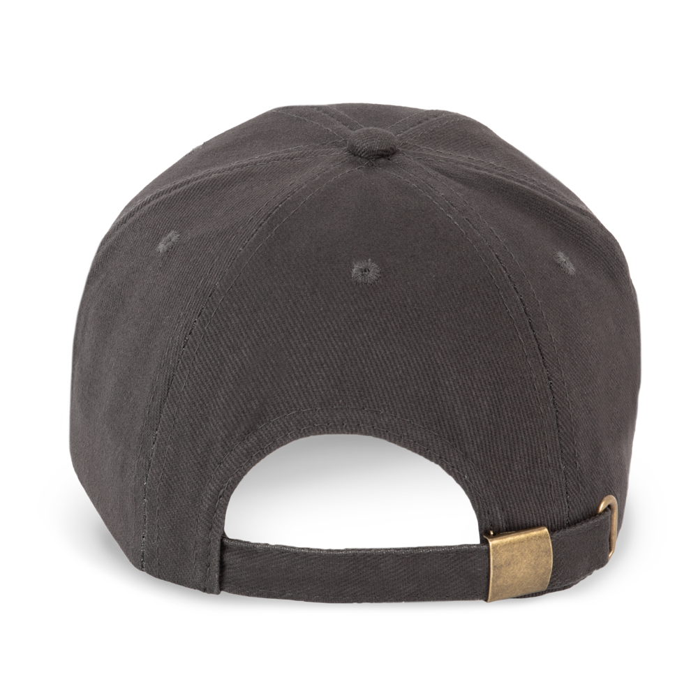 100% geborstelde zware katoen. 6 verstevigde panelen. Voorpaneel eenvoudig te bedrukken. Verstelbare metalen gesp-sluiting.