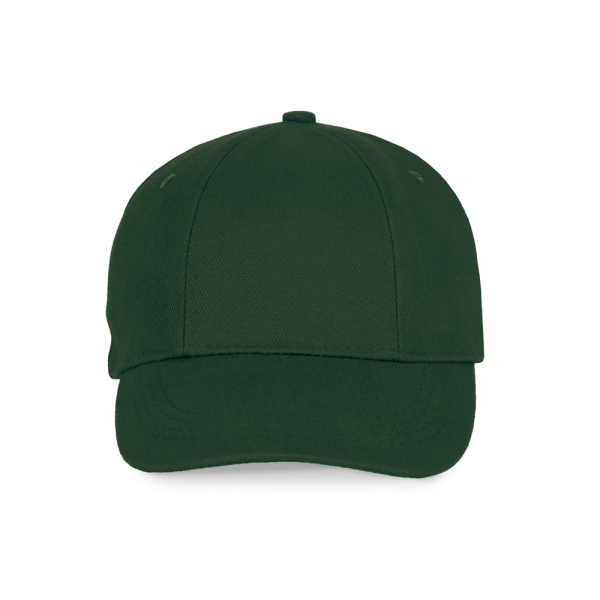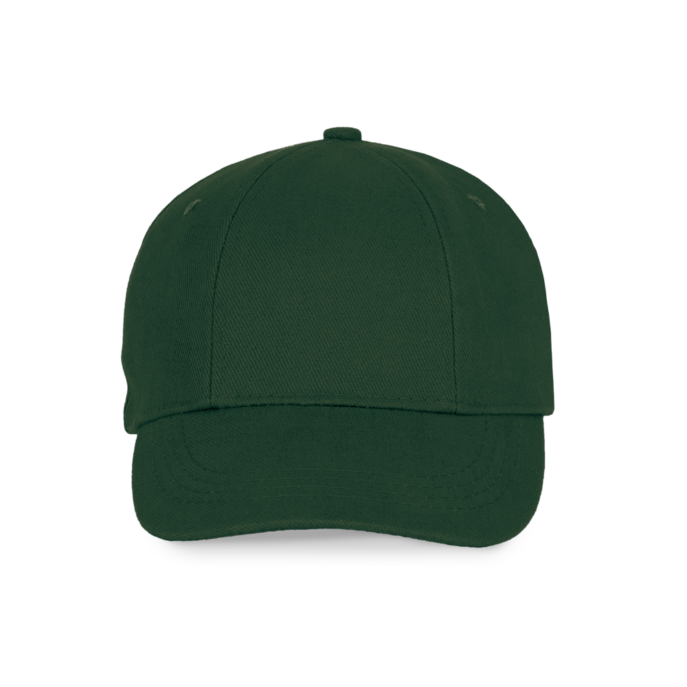 100% geborstelde zware katoen. 6 verstevigde panelen. Voorpaneel eenvoudig te bedrukken. Verstelbare metalen gesp-sluiting.