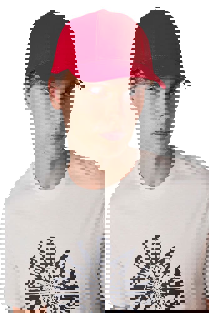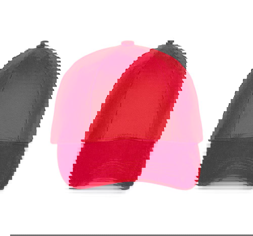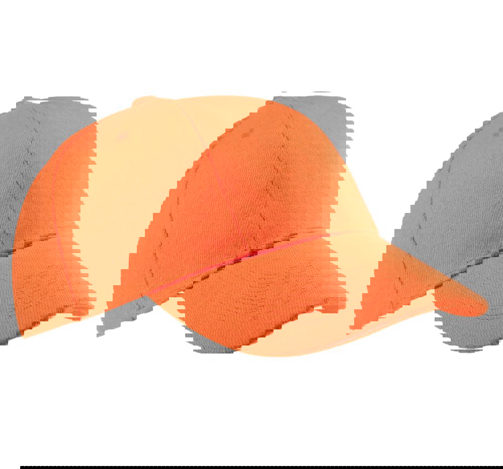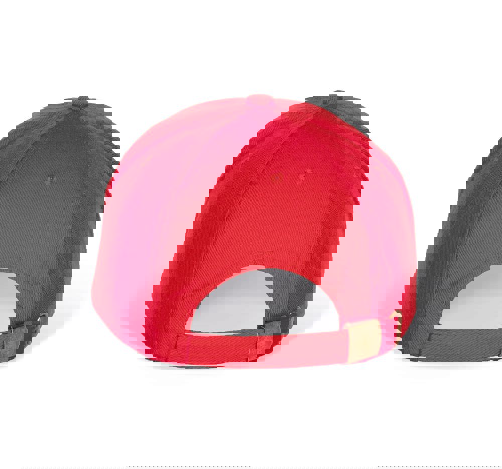 100% geborstelde zware katoen. 6 verstevigde panelen. Voorpaneel eenvoudig te bedrukken. Verstelbare metalen gesp-sluiting.