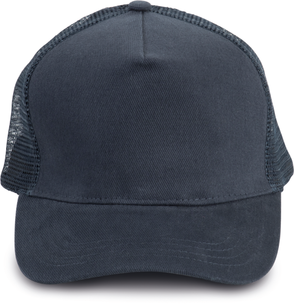 100% zwaar geborsteld katoen op frontpaneel en zonneklep, mesh 100% polyester. 5 panelen....meer