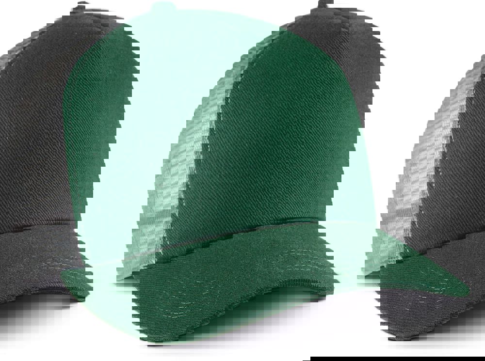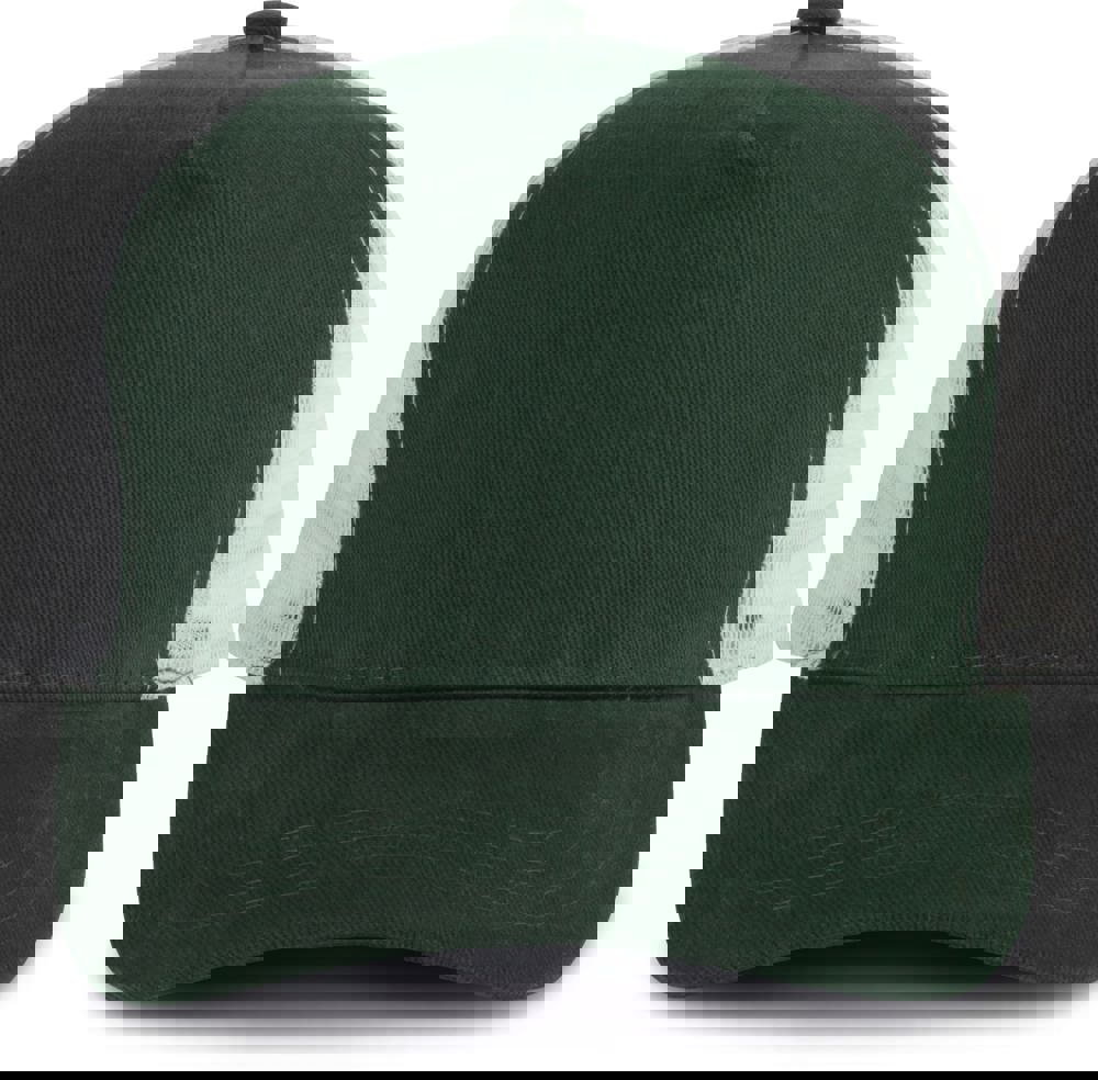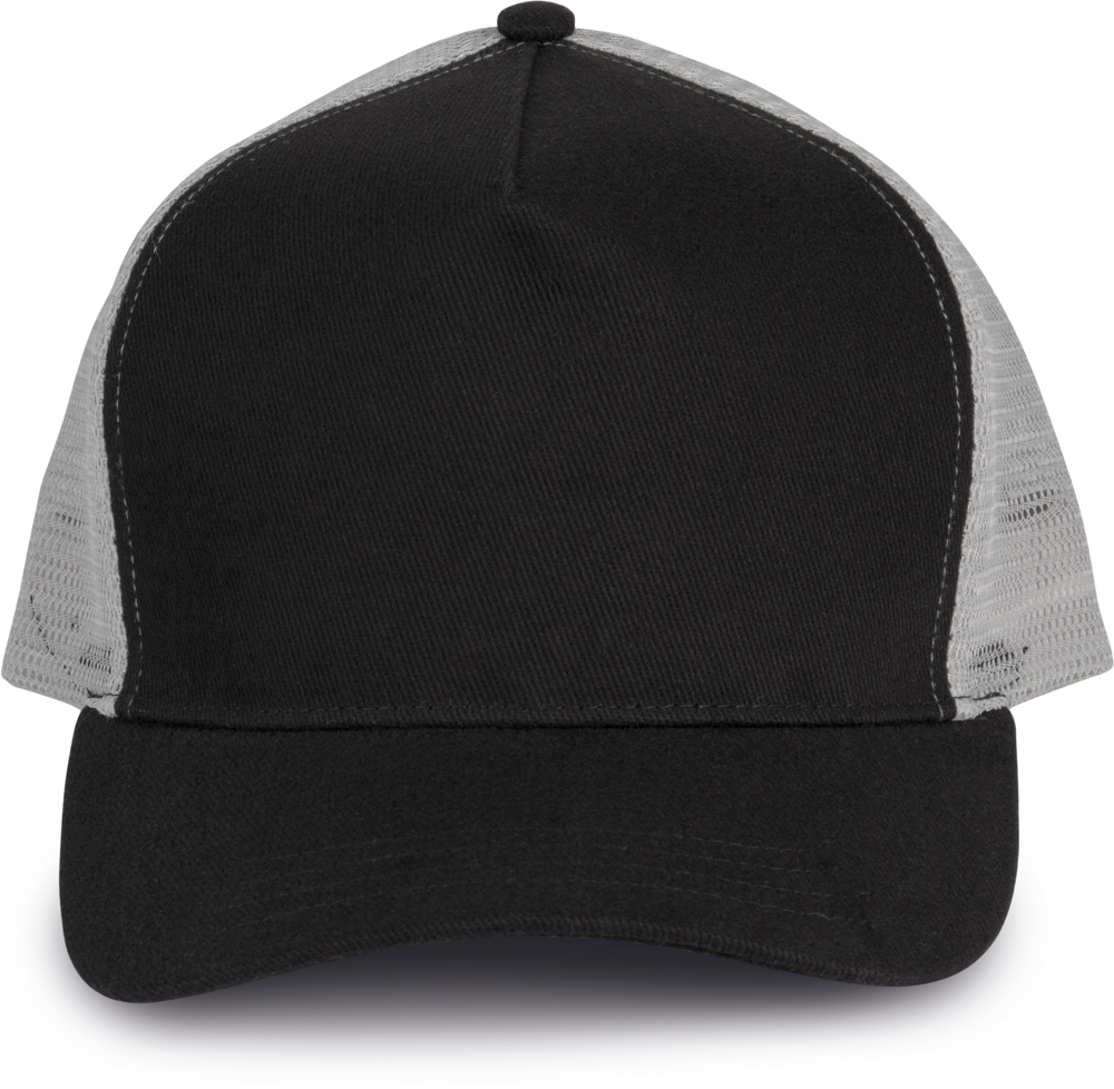100% zwaar geborsteld katoen op frontpaneel en zonneklep, mesh 100% polyester. 5 panelen....meer