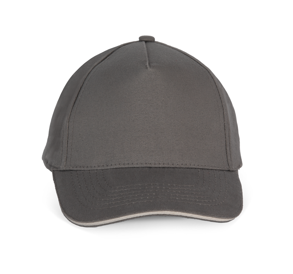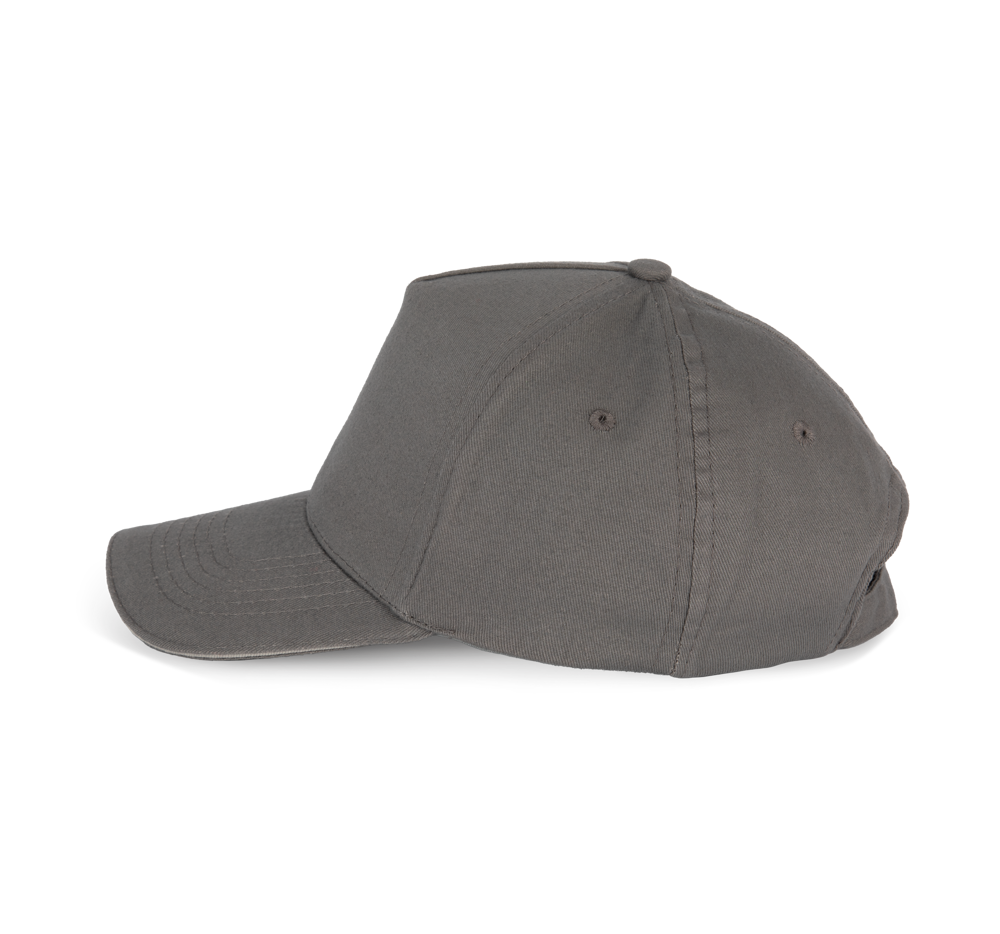 100% geborsteld twillkatoen. 5 panelen. Contrasterende bies. Verstelbare sluiting aan de achterkant met metalen gesp. Hoofdomvang: 53 cm.