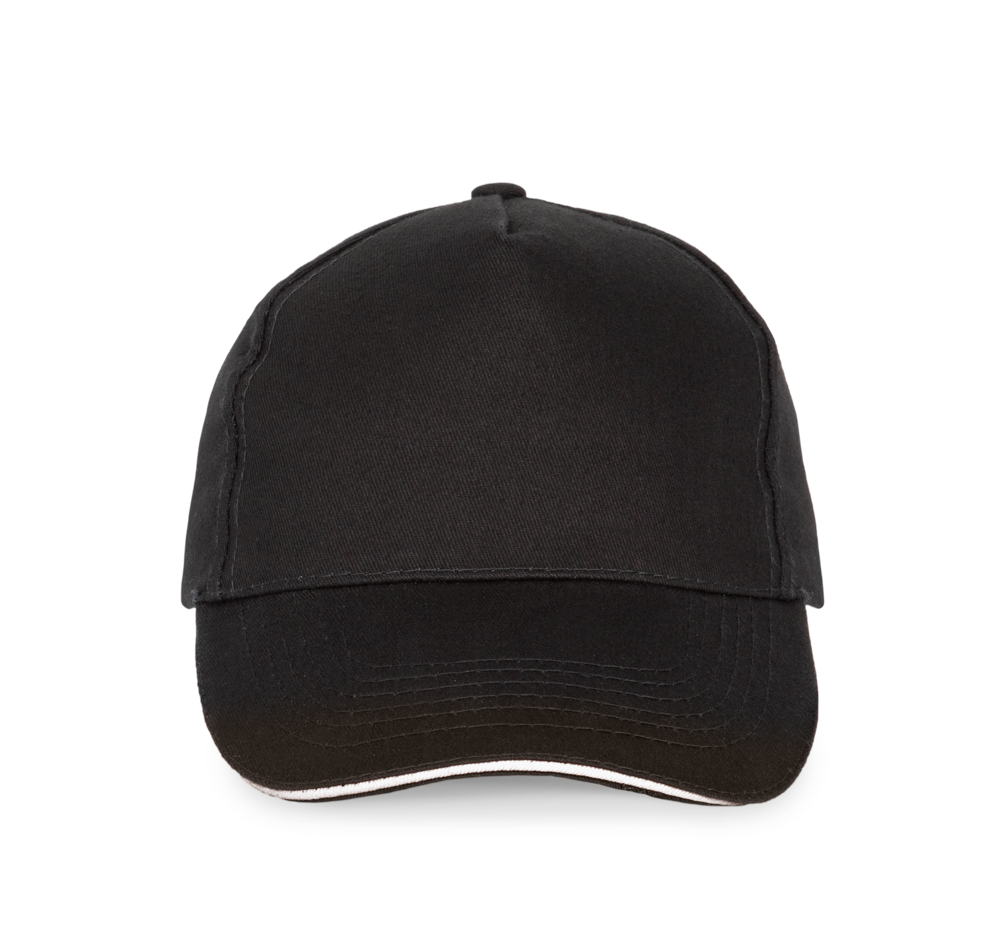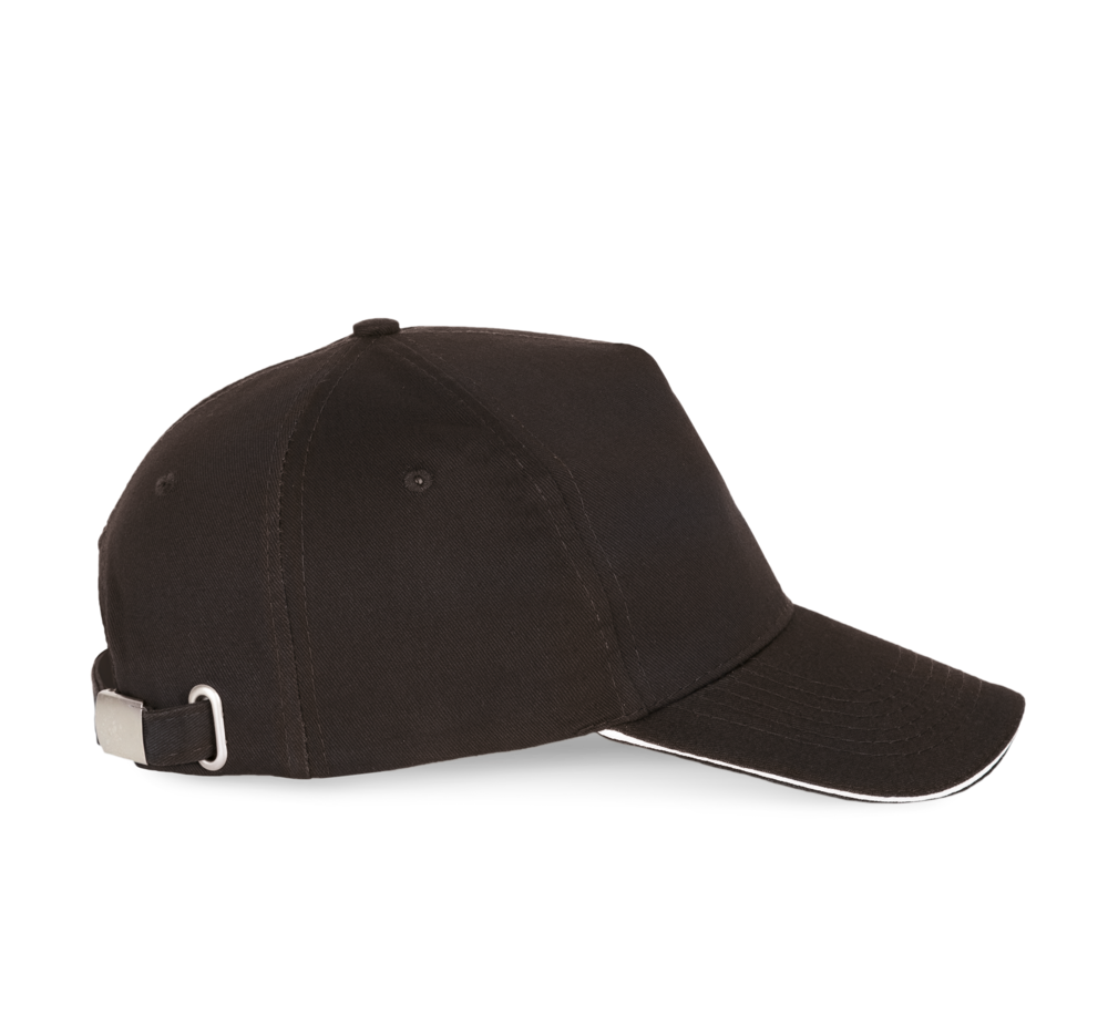 100% zwaar geborsteld sergé katoen. 5 panelen. Klep met contstrasterende bies. Katoenen zweetband. Verstelbare gesp-sluiting.