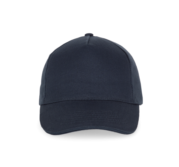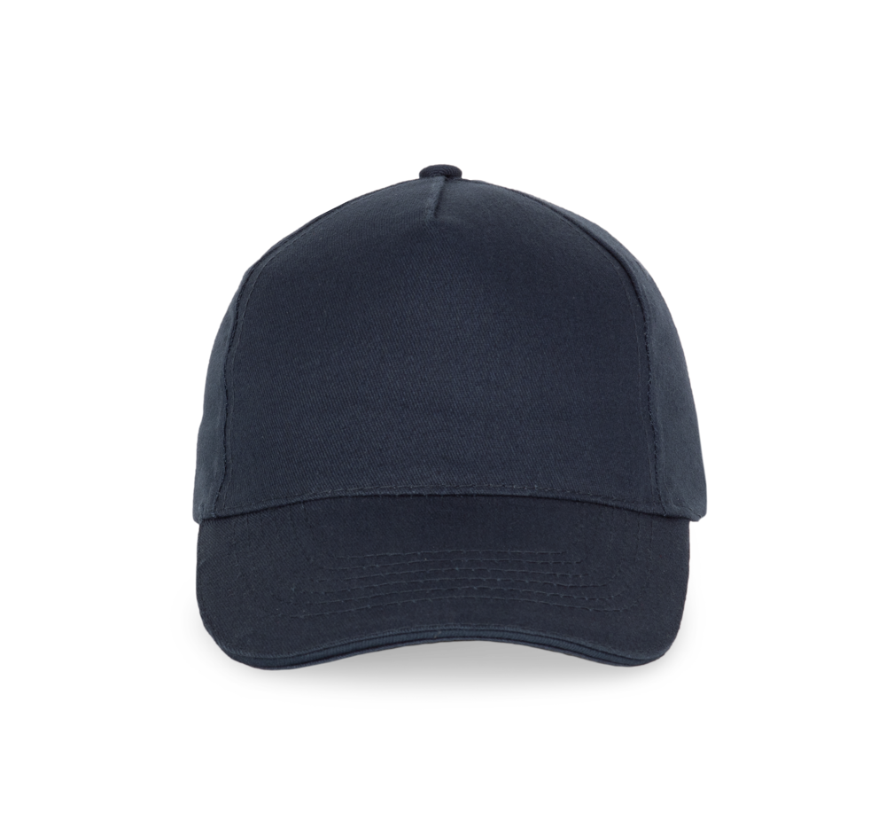 100% zwaar geborsteld sergé katoen. 5 panelen. Klep met contstrasterende bies. Katoenen zweetband. Verstelbare gesp-sluiting.