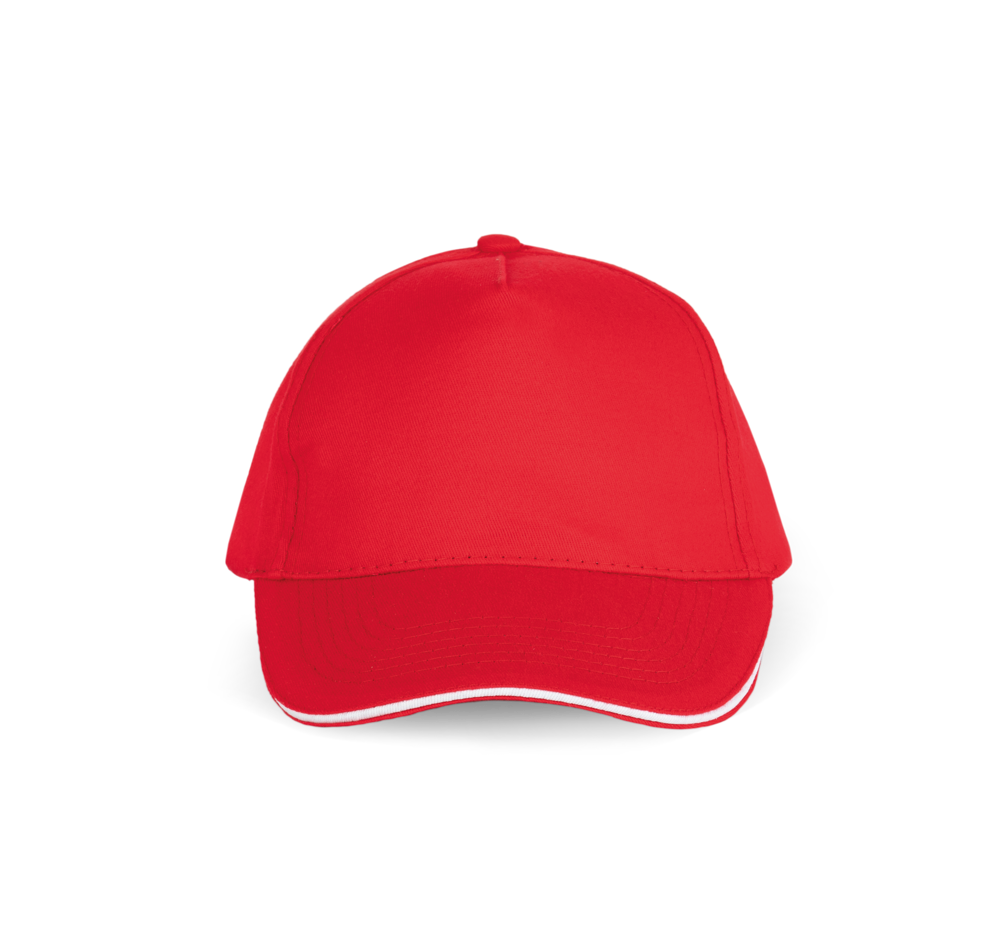 100% zwaar geborsteld sergé katoen. 5 panelen. Klep met contstrasterende bies. Katoenen zweetband. Verstelbare gesp-sluiting.