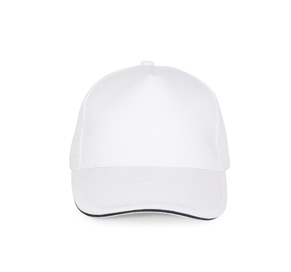 100% zwaar geborsteld sergé katoen. 5 panelen. Klep met contstrasterende bies. Katoenen zweetband. Verstelbare gesp-sluiting.