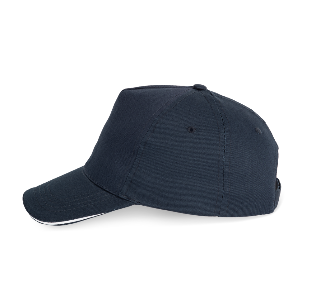 100% sergé katoen. Pet met 5 panels en gecontrasteerde bies. Katoenen zweetbandje. Klittenbandsluiting.