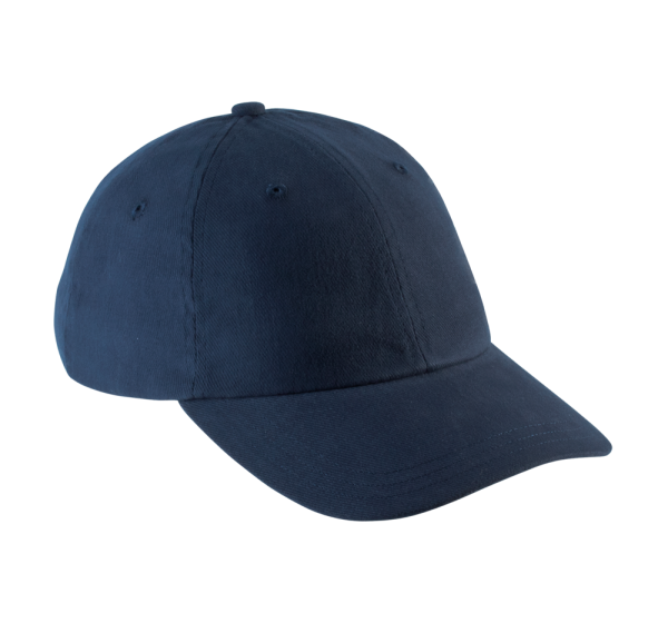100% geborsteld zwaar katoen. 6 panelen. Laag profiel zonneklep. Sluiting aan de achterkant met metalen gesp.