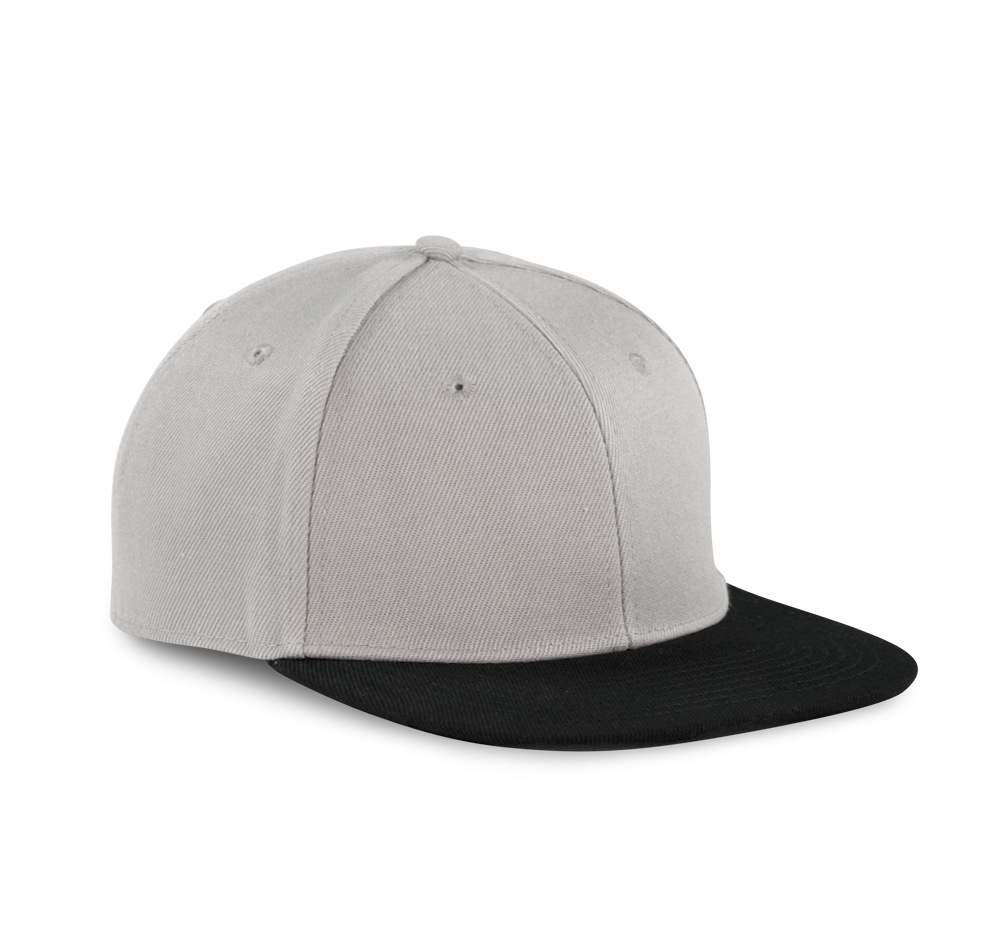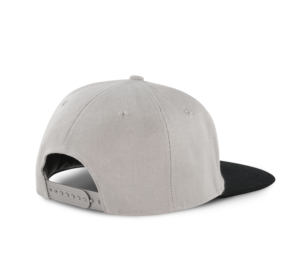 100% polyester. Pet Snapback met 6 panelen. Platte zonneklep en hoog profiel. Verstelbare druksluiting van plastic.