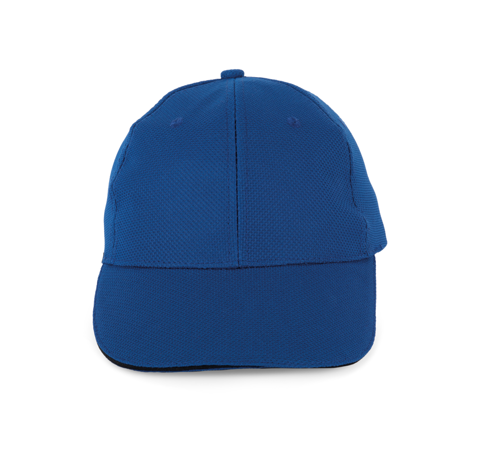 100% polyester piqué. Luchtgaatjes. Rand van de klep in contrastkleur. Afgezet met een band van badstof aan de binnenkant voor een optimaal comfort. Verstelbare sluiting van klittenband.