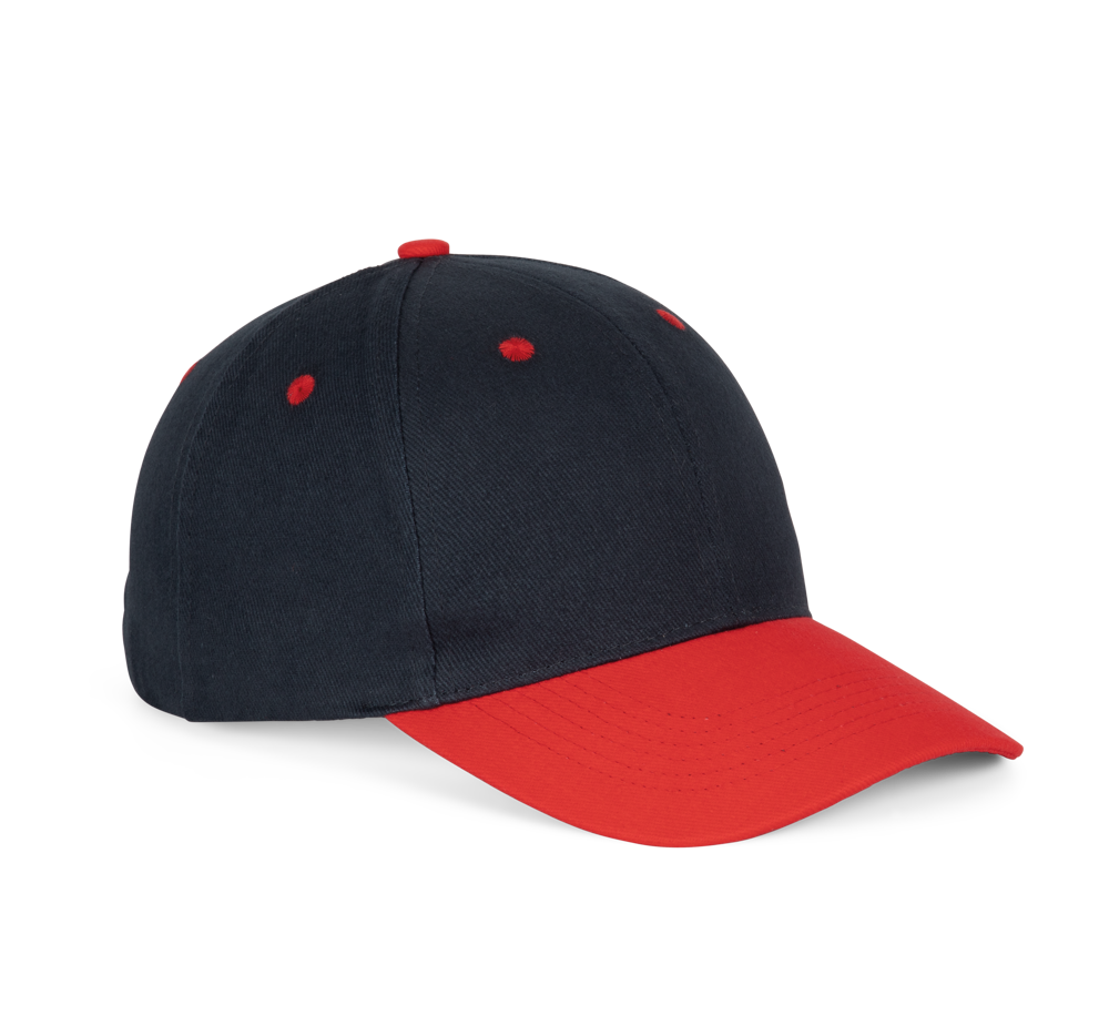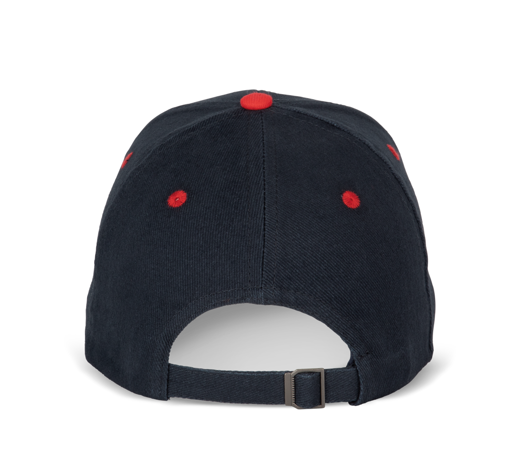 100% katoen. Pet 6 panelen. Verstelbare sluiting met metalen gesp en zelfblokkerende lus.