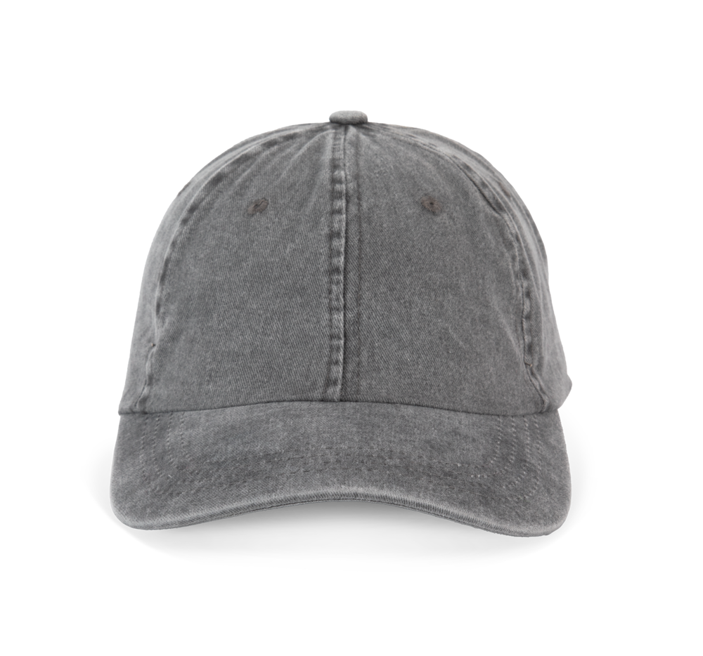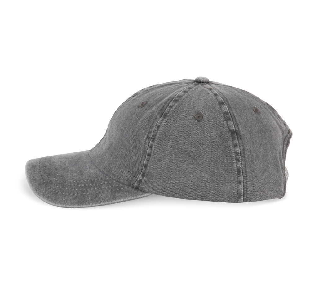 100% zwaar geborsteld katoen voor de vintage look. 6 panelen. Laag profiel zonneklep, afgerond. Verstelbare sluiting aan de achterkant met metalen gesp.
