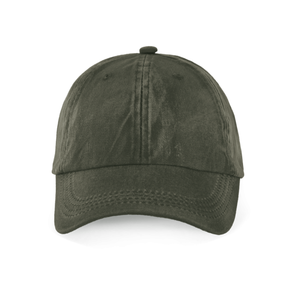 100% zwaar geborsteld katoen voor de vintage look. 6 panelen. Laag profiel zonneklep, afgerond. Verstelbare sluiting aan de achterkant met metalen gesp.