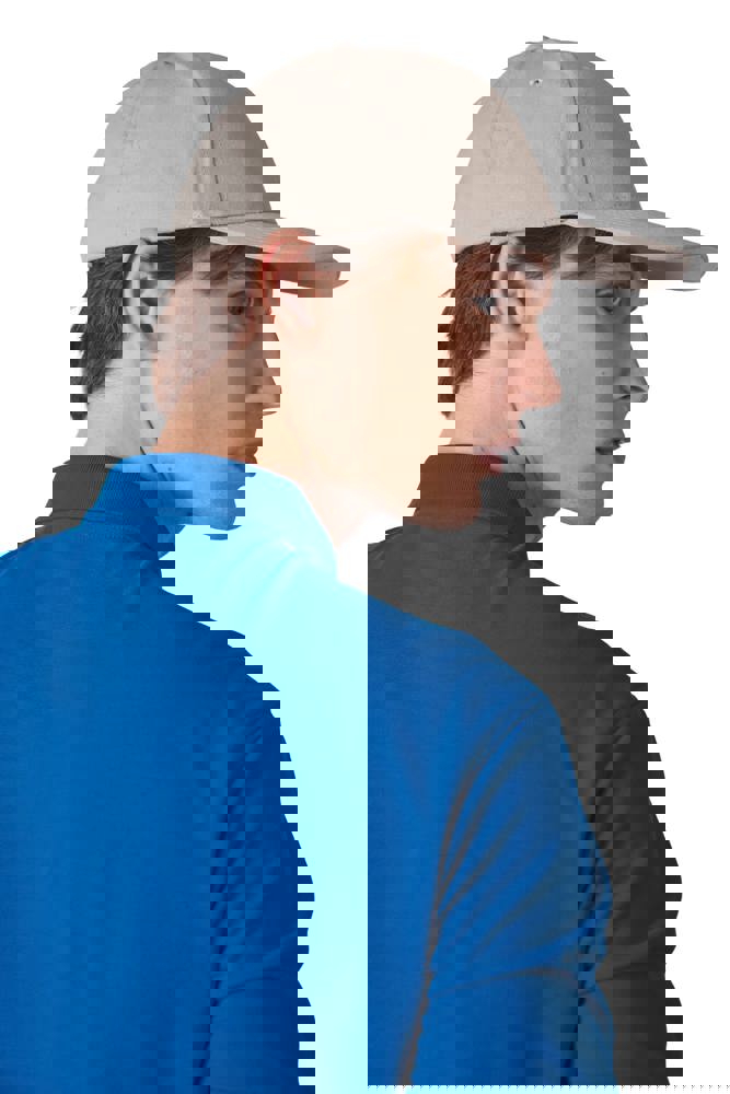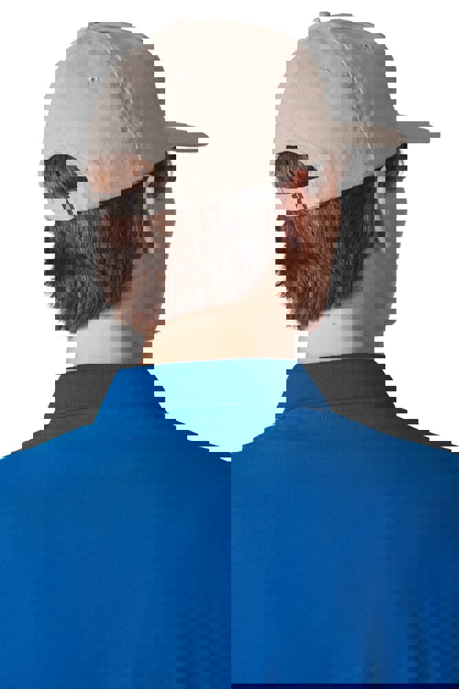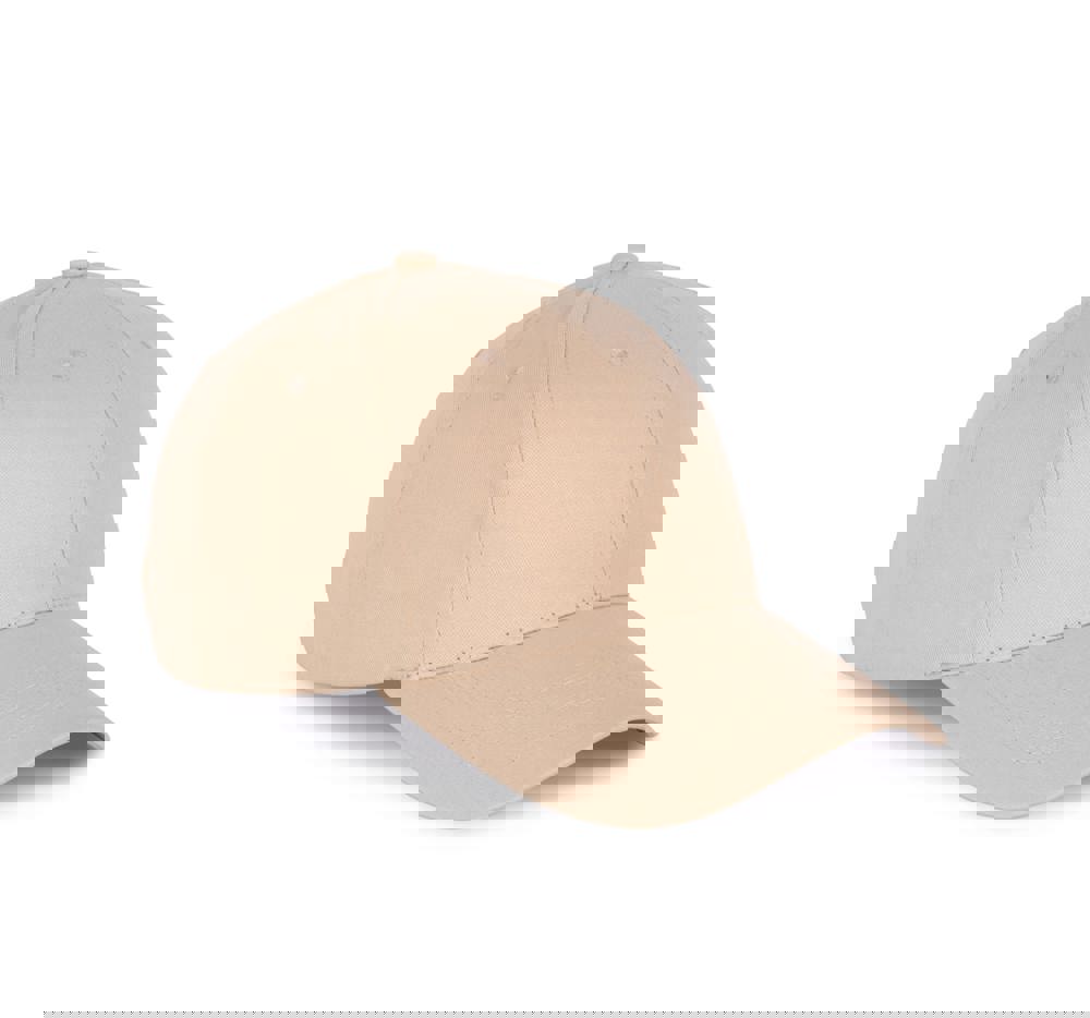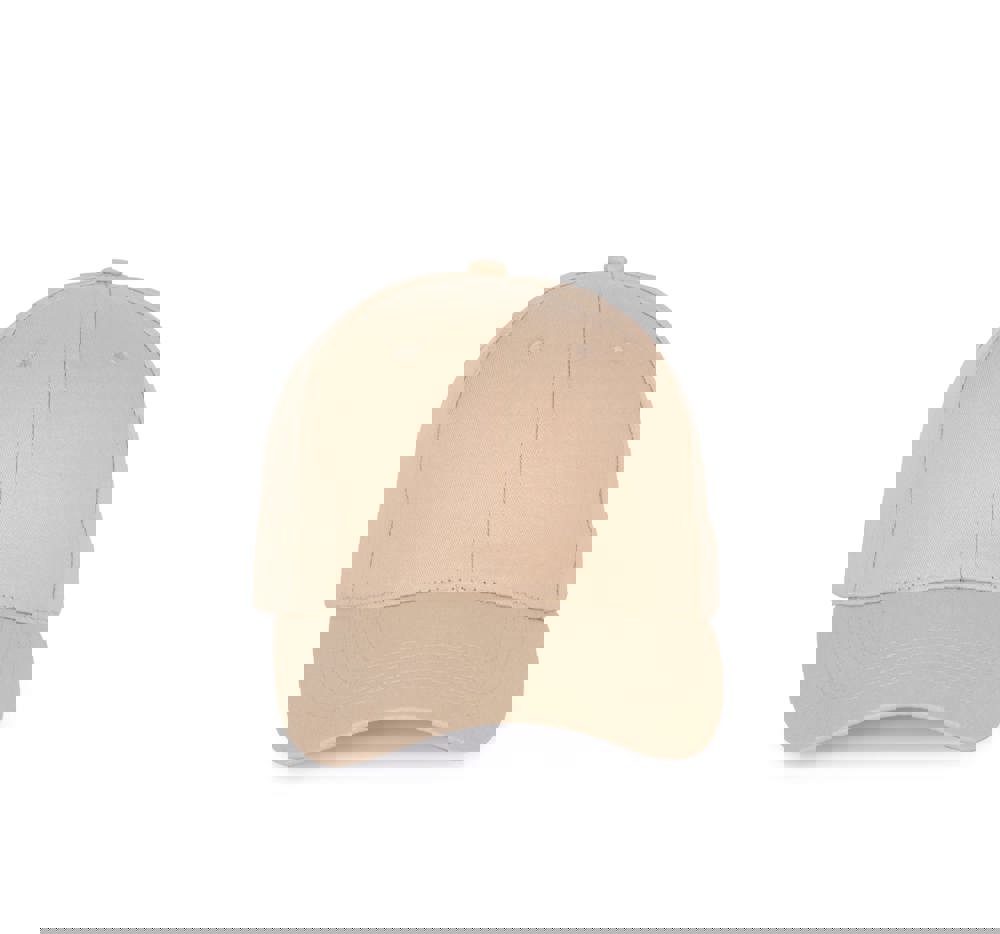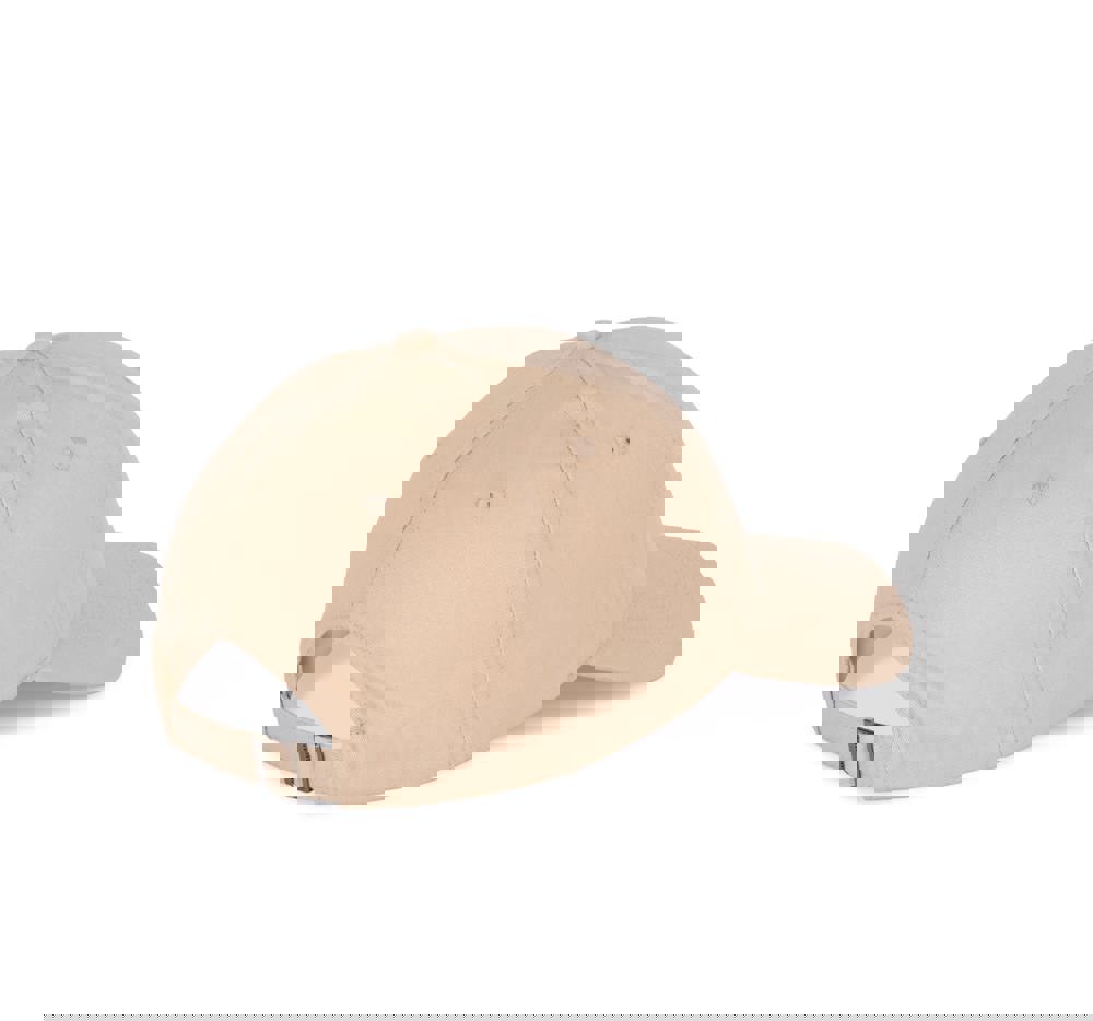 100% katoen. Pet 6 panelen. Verstelbare sluiting met metalen gesp en zelfblokkerende lus.