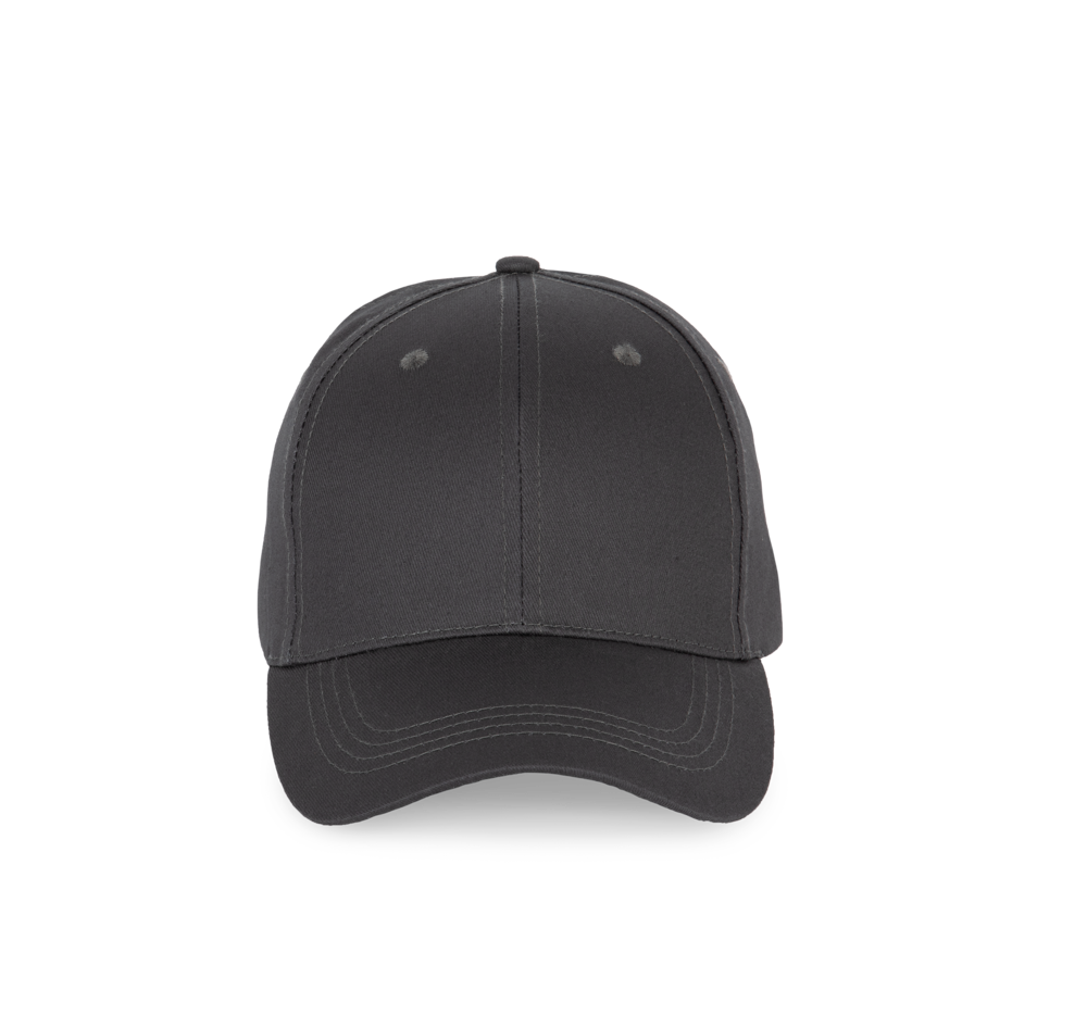 100% katoen. Pet 6 panelen. Verstelbare sluiting met metalen gesp en zelfblokkerende lus.