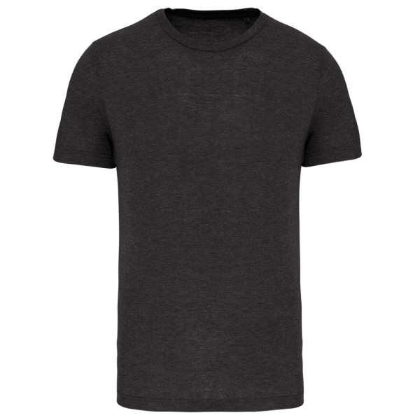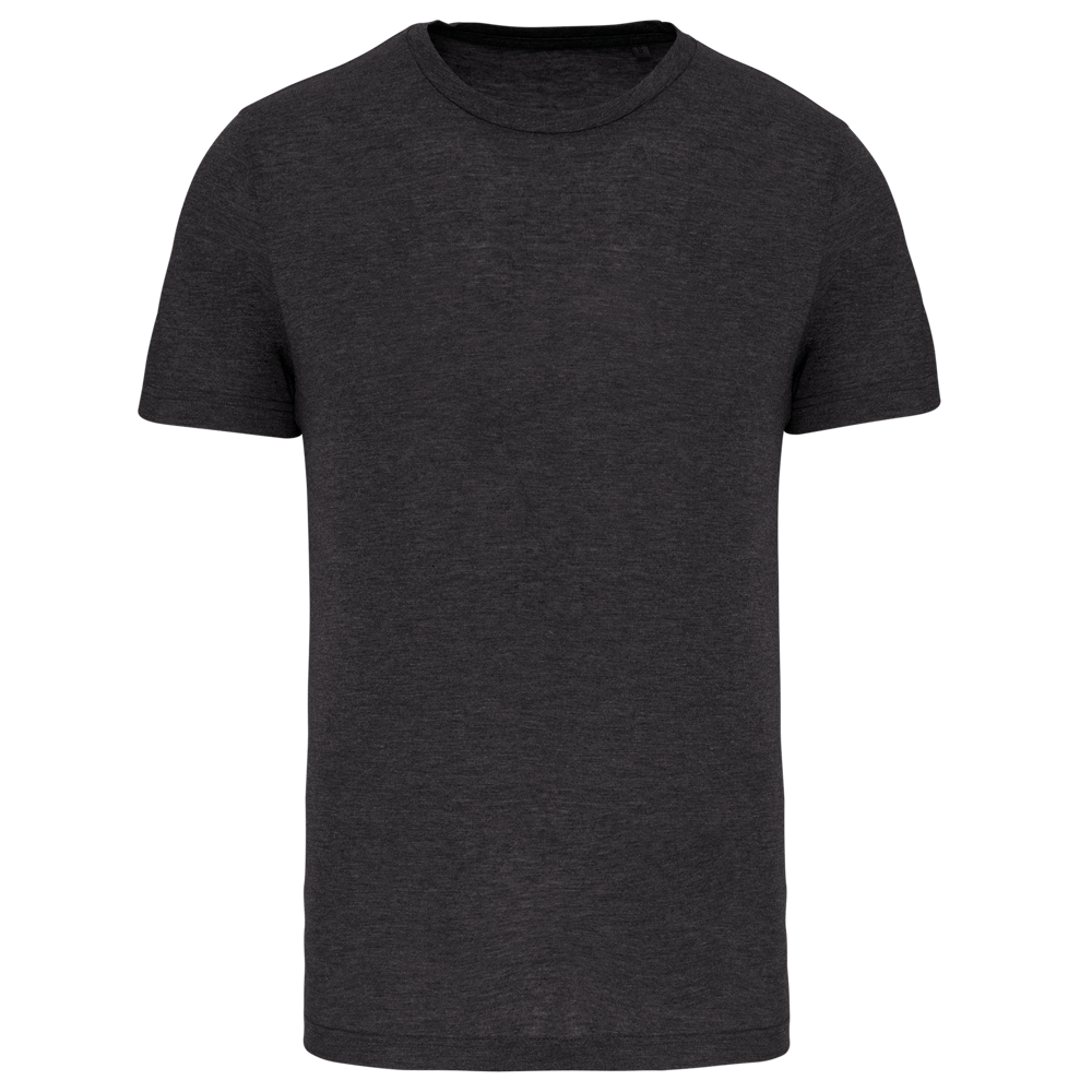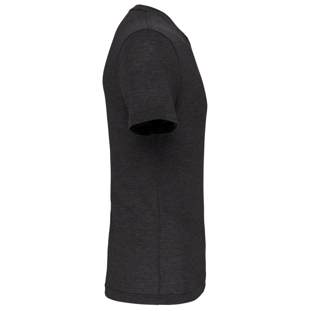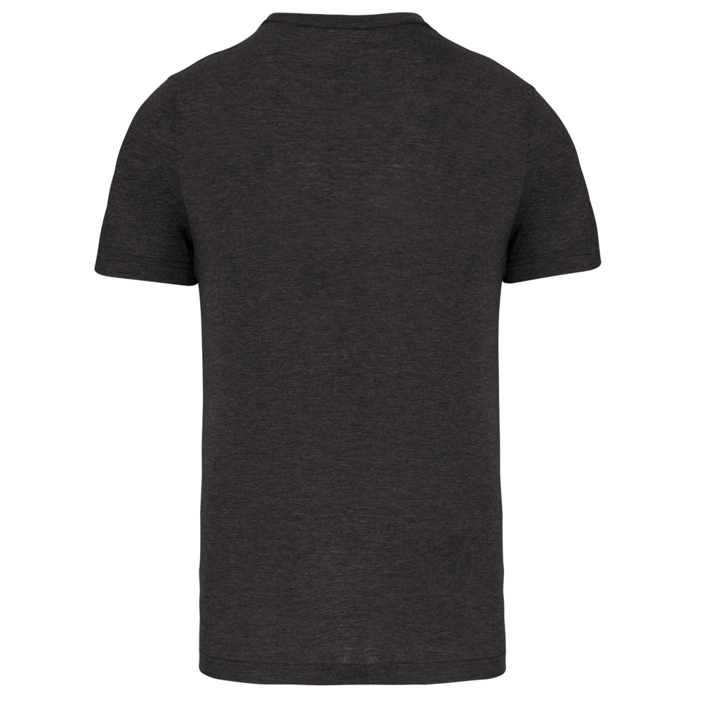 50% polyester / 25% katoen / 25% viscose. Jerseystof. Toon-op-toon nektape. Dubbel stiksel aan mouwuiteinden en onderkant. Geen merklabel in de kraag, maar enkel een maatlabel voor eenvoudige personalisatie.