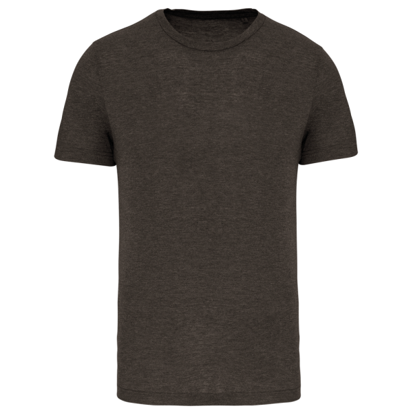 50% polyester / 25% katoen / 25% viscose. Jerseystof. Toon-op-toon nektape. Dubbel stiksel aan mouwuiteinden en onderkant. Geen merklabel in de kraag, maar enkel een maatlabel voor eenvoudige personalisatie.