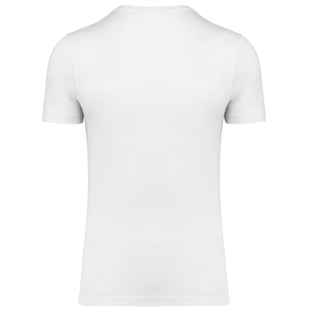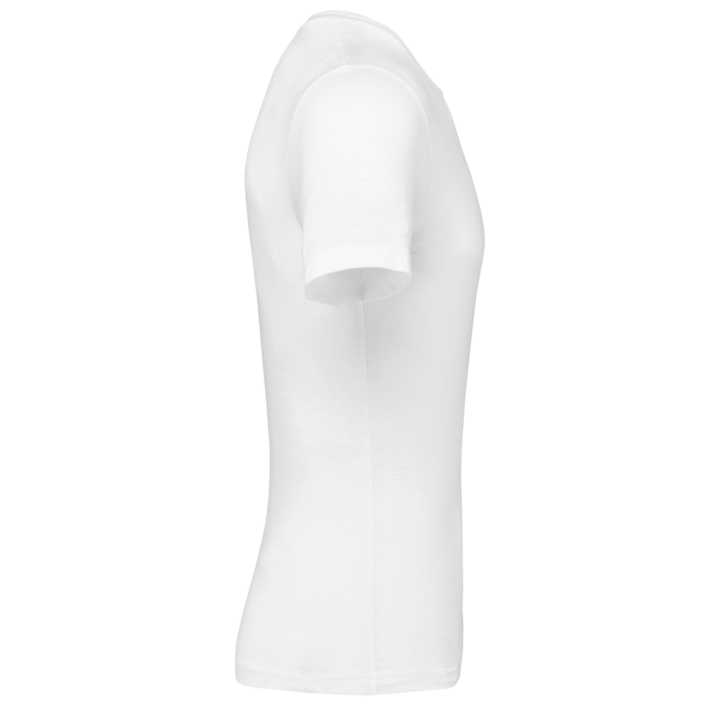 50% polyester / 25% katoen / 25% viscose. Jerseystof. Toon-op-toon nektape. Dubbel stiksel aan mouwuiteinden en onderkant. Geen merklabel in de kraag, maar enkel een maatlabel voor eenvoudige personalisatie.