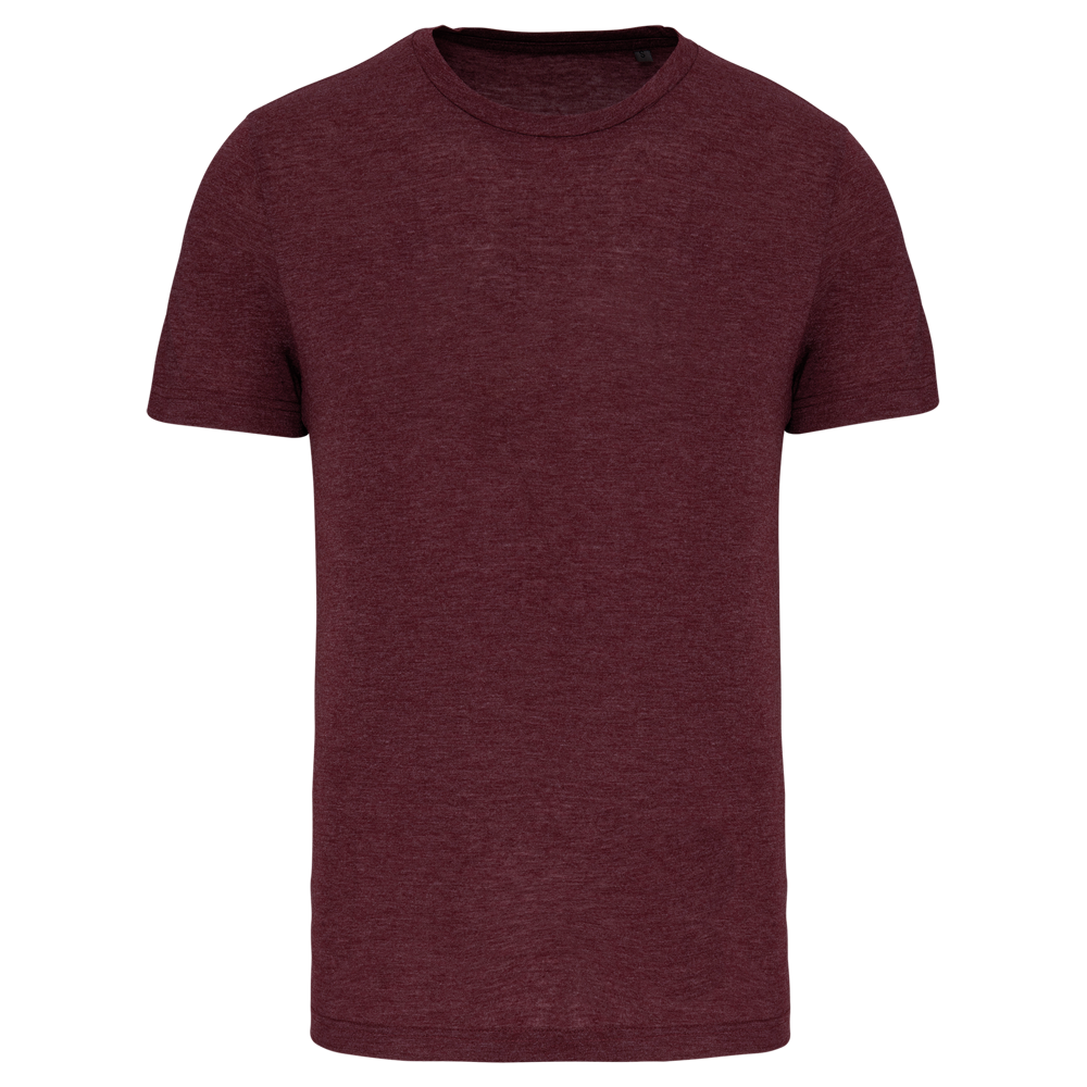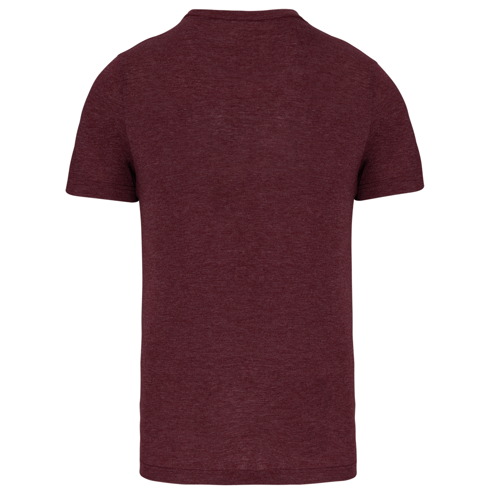 50% polyester / 25% katoen / 25% viscose. Jerseystof. Toon-op-toon nektape. Dubbel stiksel aan mouwuiteinden en onderkant. Geen merklabel in de kraag, maar enkel een maatlabel voor eenvoudige personalisatie.
