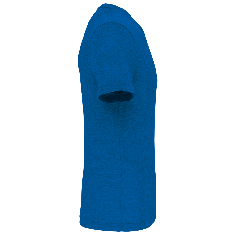 50% polyester / 25% katoen / 25% viscose. Jerseystof. Toon-op-toon nektape. Dubbel stiksel aan mouwuiteinden en onderkant. Geen merklabel in de kraag, maar enkel een maatlabel voor eenvoudige personalisatie.