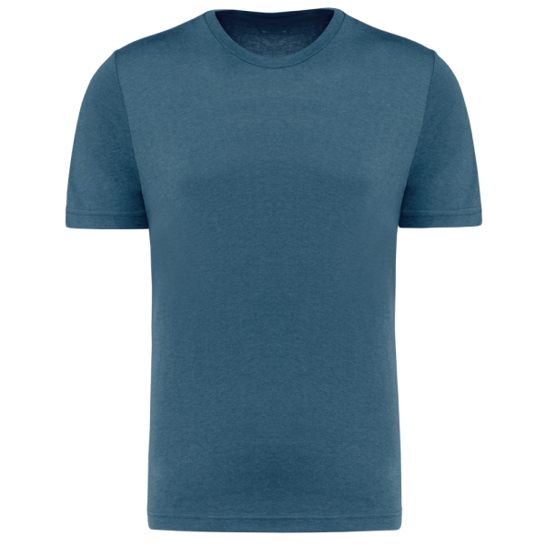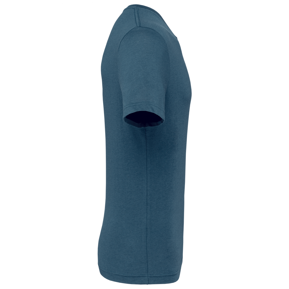 50% polyester / 25% katoen / 25% viscose. Jerseystof. Toon-op-toon nektape. Dubbel stiksel aan mouwuiteinden en onderkant. Geen merklabel in de kraag, maar enkel een maatlabel voor eenvoudige personalisatie.