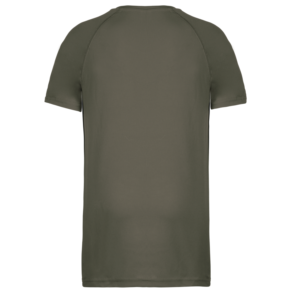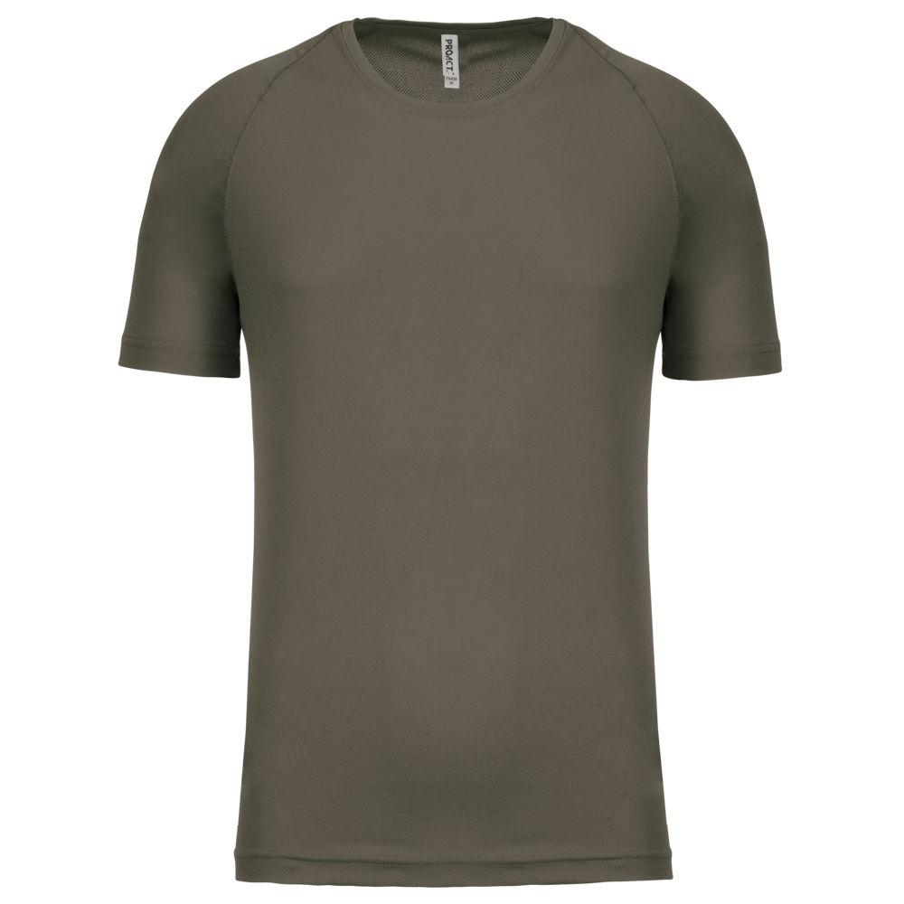 100% polyester. Sneldrogende lichte stof. Ronde hals. Nektape. Raglan mouwen met overstiksels. Afwerking met dubbele stiksels aan de mouwuiteinden en onderkant.