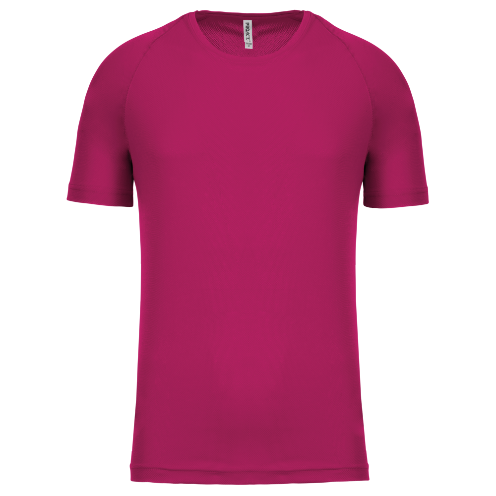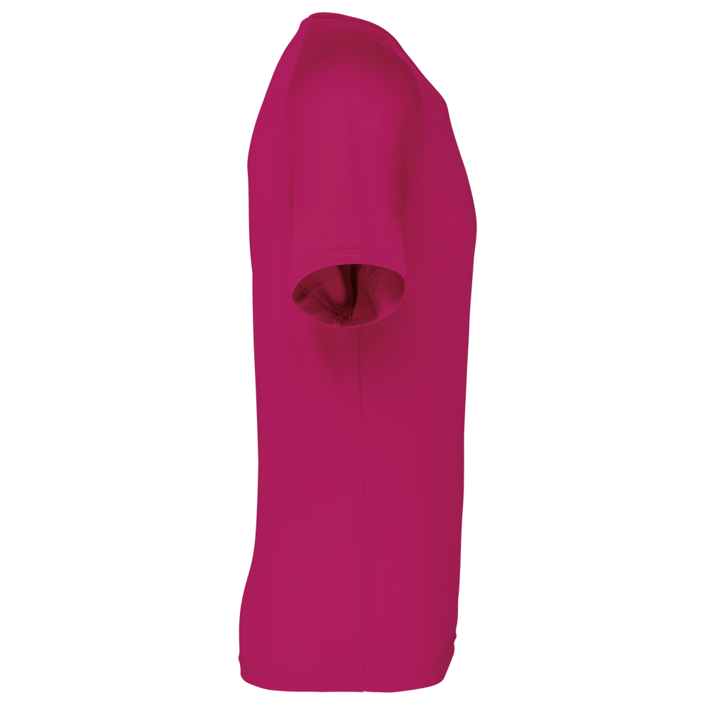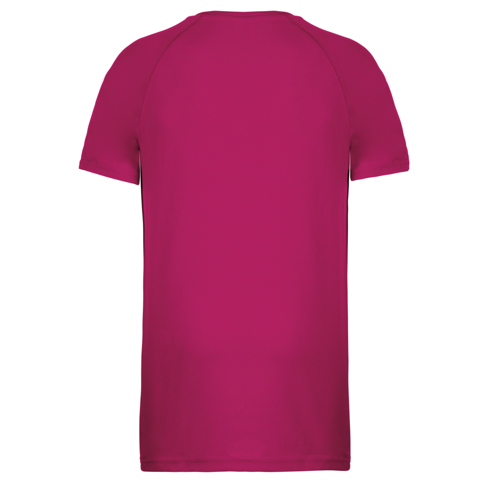 100% polyester. Sneldrogende lichte stof. Ronde hals. Nektape. Raglan mouwen met overstiksels. Afwerking met dubbele stiksels aan de mouwuiteinden en onderkant.