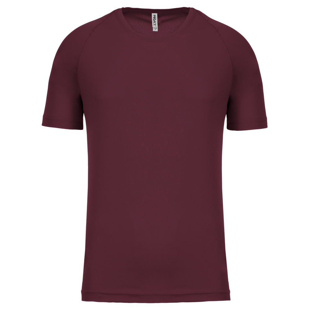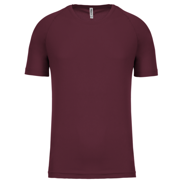 100% polyester. Sneldrogende lichte stof. Ronde hals. Nektape. Raglan mouwen met overstiksels. Afwerking met dubbele stiksels aan de mouwuiteinden en onderkant.
