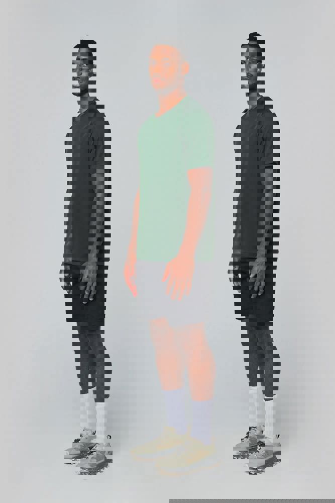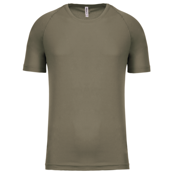 100% polyester. Sneldrogende lichte stof. Ronde hals. Nektape. Raglan mouwen met overstiksels. Afwerking met dubbele stiksels aan de mouwuiteinden en onderkant.