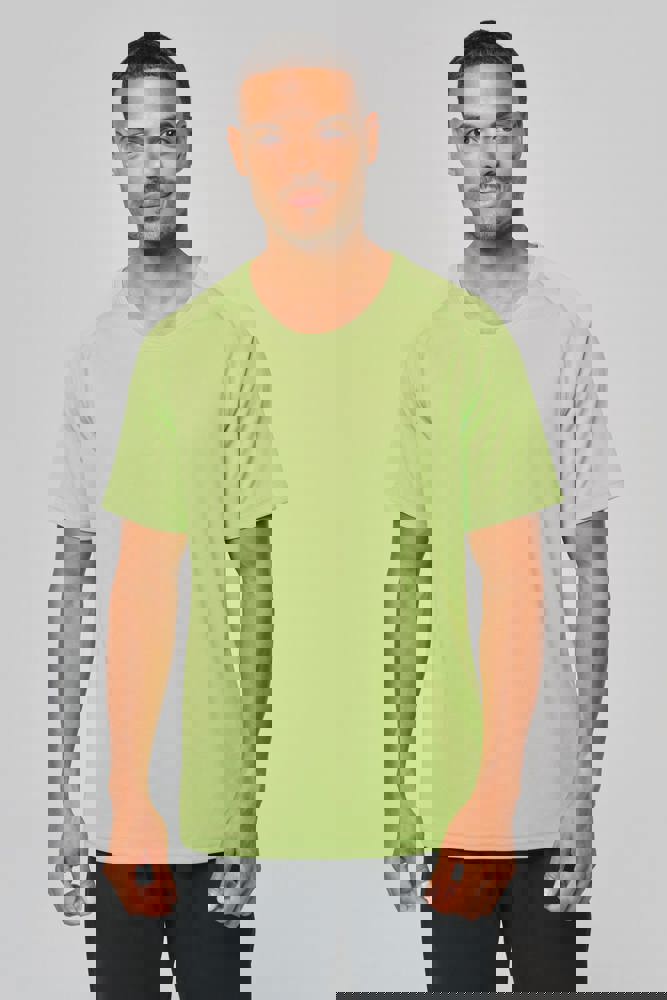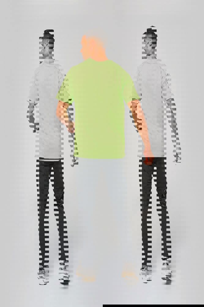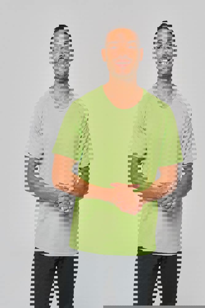 100% polyester. Sneldrogende lichte stof. Ronde hals. Nektape. Raglan mouwen met overstiksels....meer