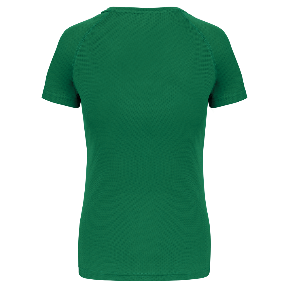 100% polyester. Sneldrogende lichte stof. Ronde hals. Nektape. Raglan mouwen met overstiksels. Afwerking met dubbele stiksels aan de mouwuiteinden en onderkant.