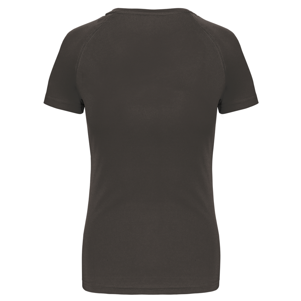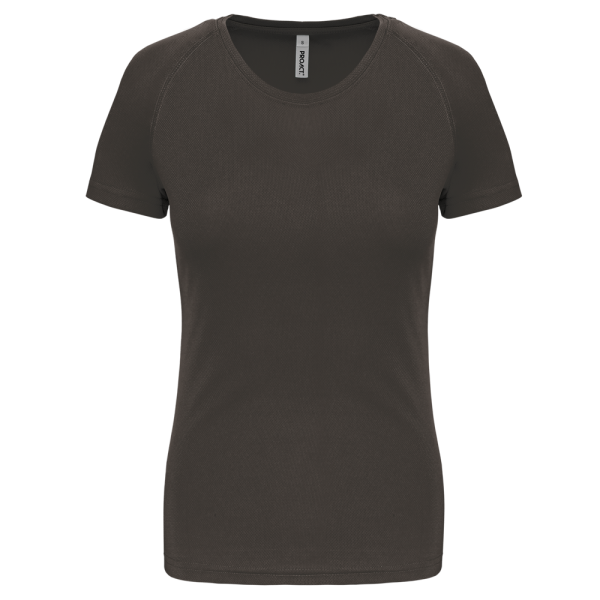 100% polyester. Sneldrogende lichte stof. Ronde hals. Nektape. Raglan mouwen met overstiksels. Afwerking met dubbele stiksels aan de mouwuiteinden en onderkant.