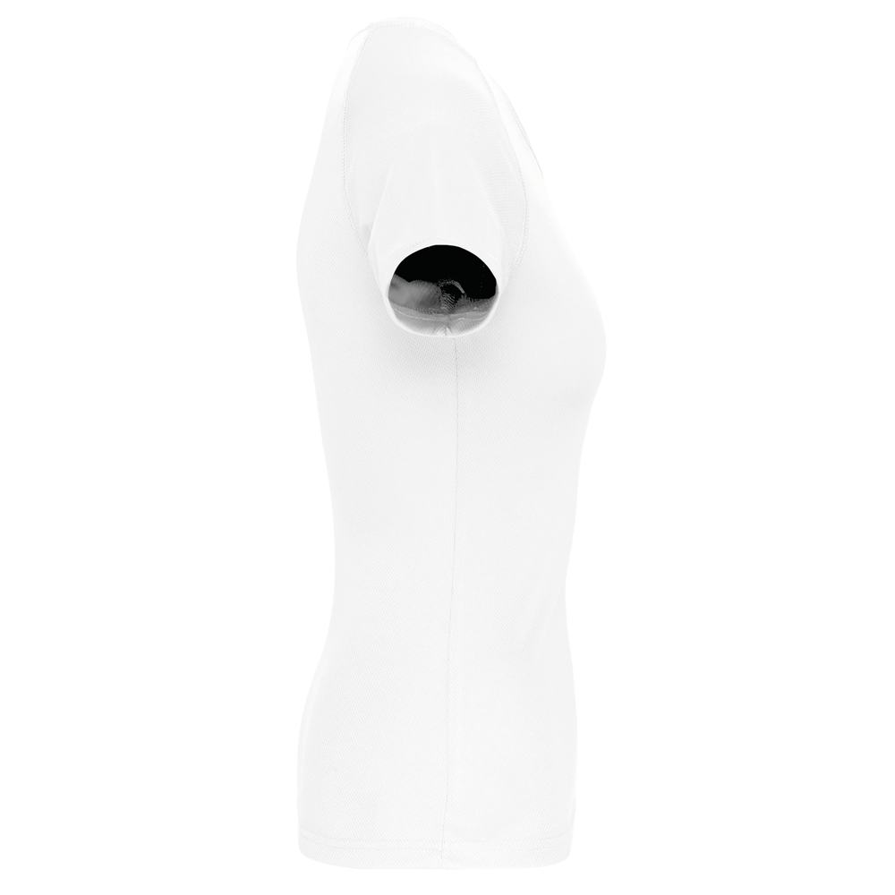 100% polyester. Sneldrogende lichte stof. Ronde hals. Nektape. Raglan mouwen met overstiksels. Afwerking met dubbele stiksels aan de mouwuiteinden en onderkant.