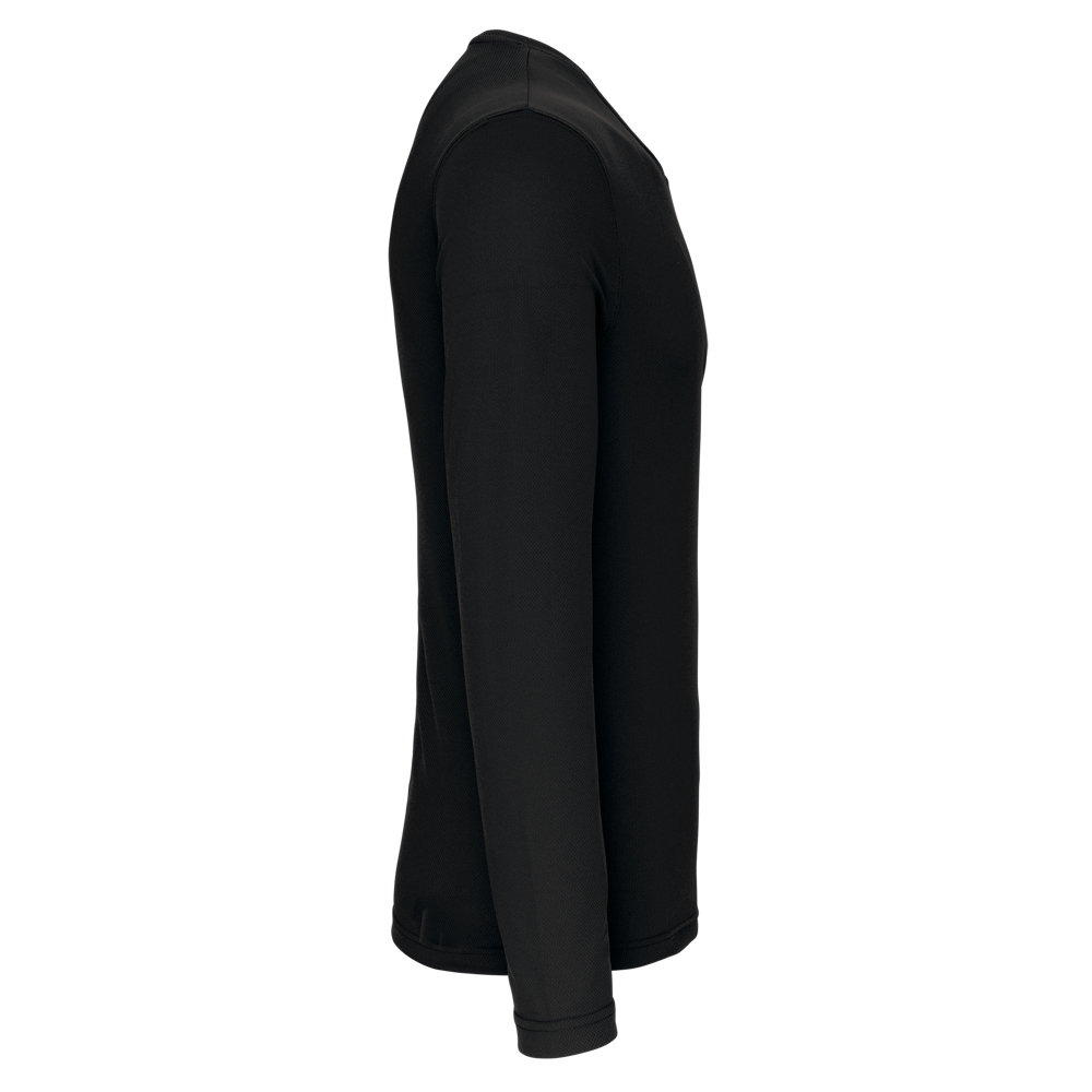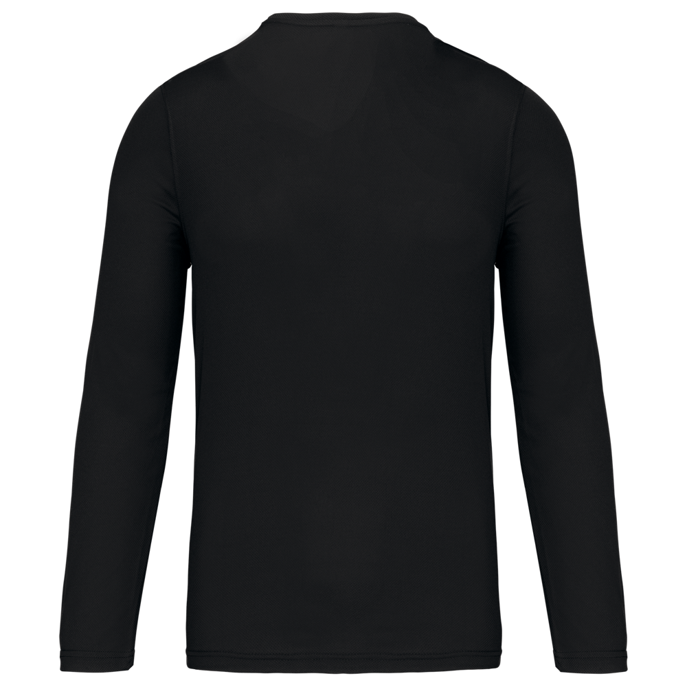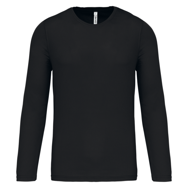 100% polyester. Sneldrogende lichte stof. Ronde hals. Nektape. Afwerking met dubbele stiksels aan de mouwuiteinden en onderkant.