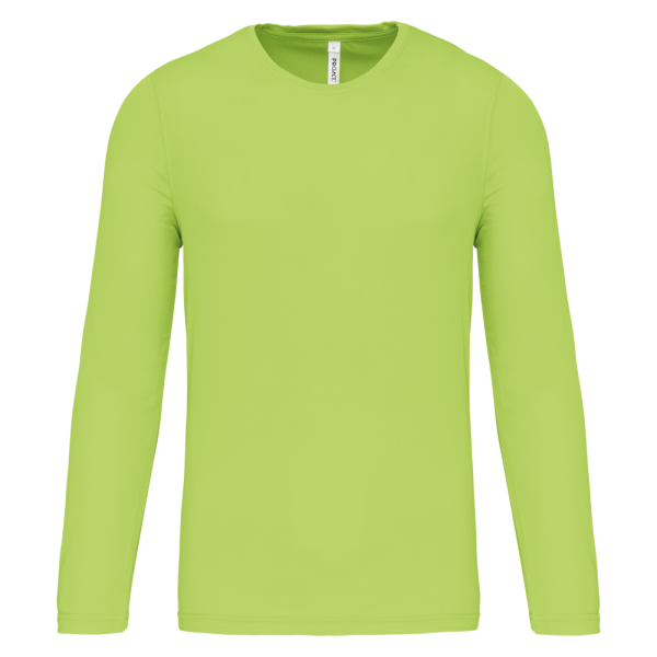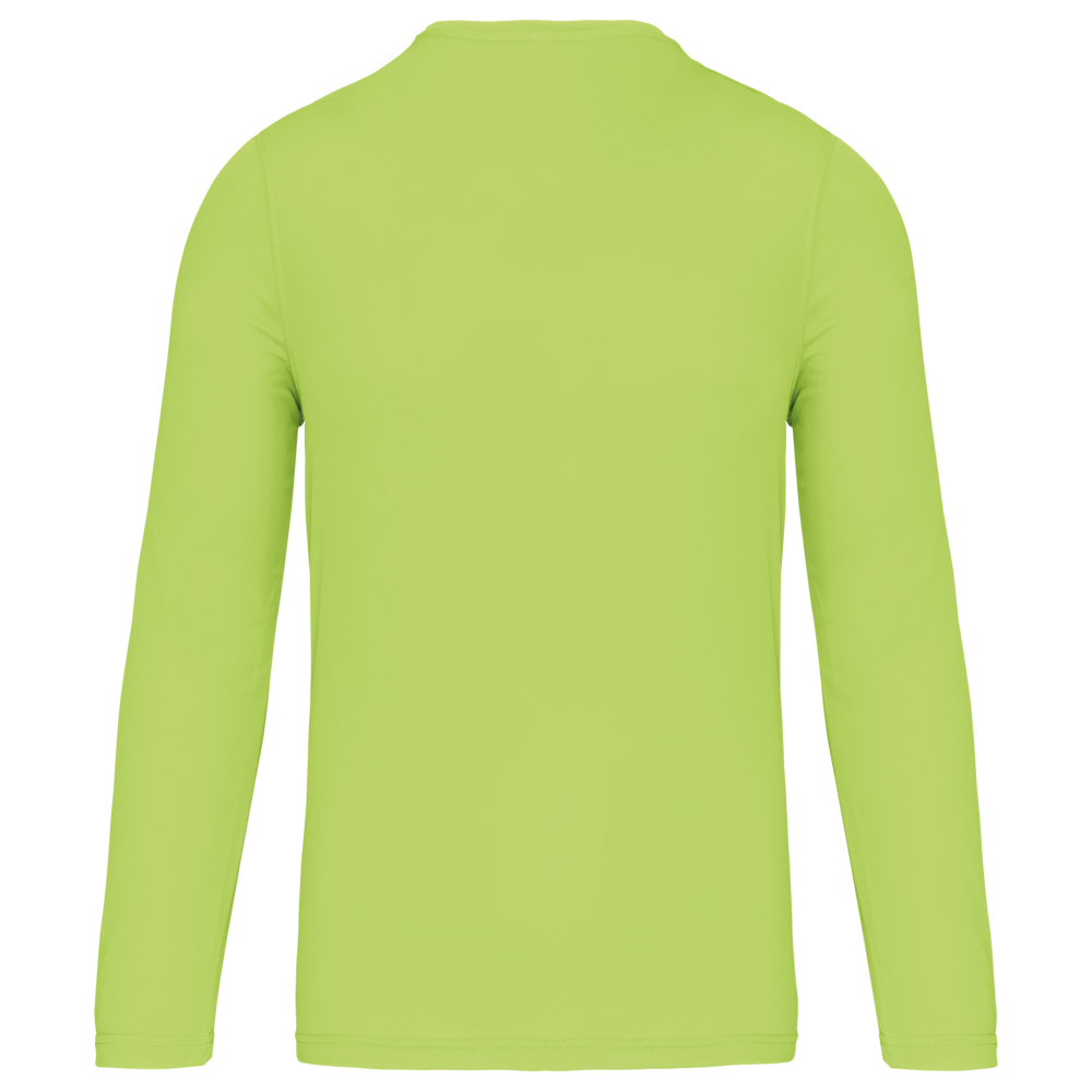 100% polyester. Sneldrogende lichte stof. Ronde hals. Nektape. Afwerking met dubbele stiksels aan de mouwuiteinden en onderkant.