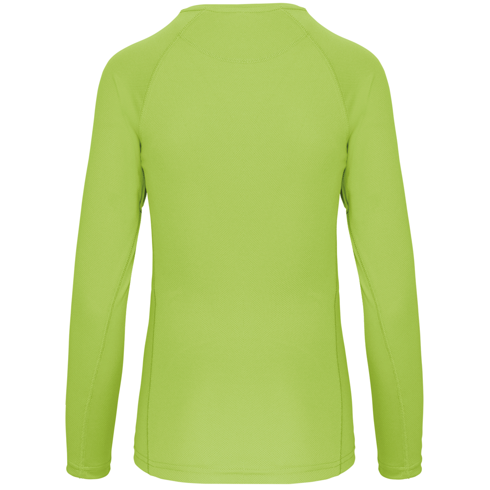 100% polyester. Sneldrogende lichte stof. Ronde hals. Nektape. Afwerking met dubbele stiksels aan de mouwuiteinden en onderkant.