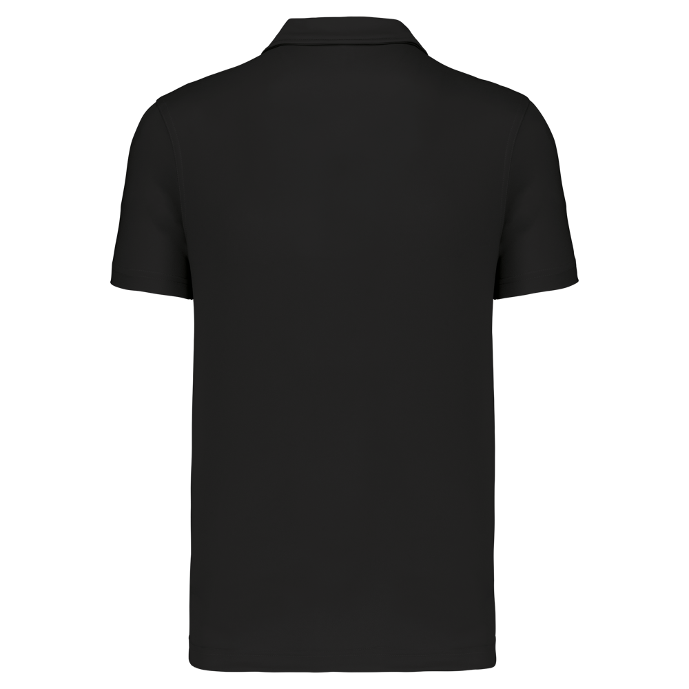 50% polyester Cool Plus® / 50% polyester. Ademende stof. Knooplijst met 3 knopen. Afwerking met dubbele stiksels aan de mouwen en onderaan.