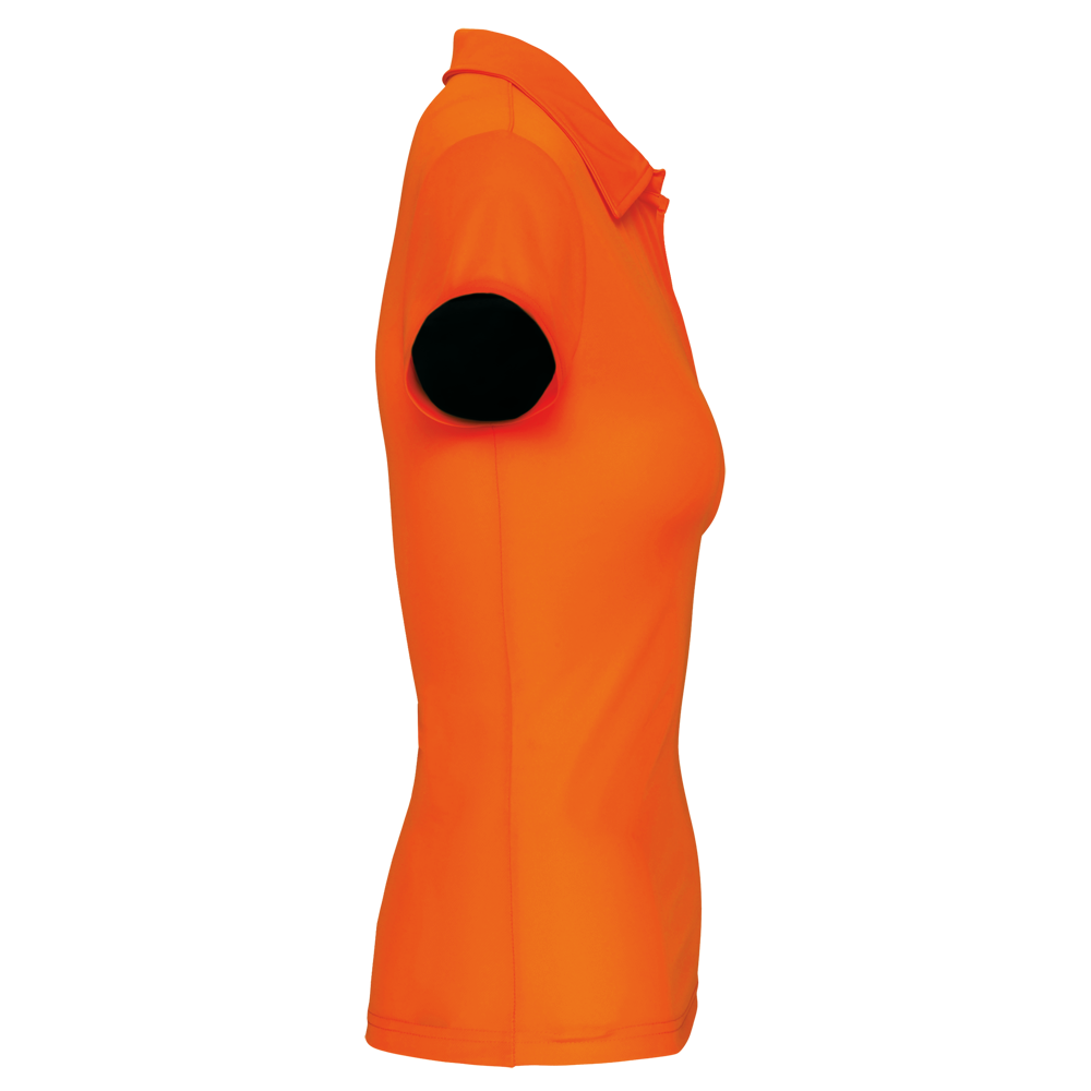 50% polyester CoolPlus® / 50% polyester. Ademende stof. Knooplijst zonder knopen. Afwerking met dubbele stiksels aan de mouwen en onderaan.
