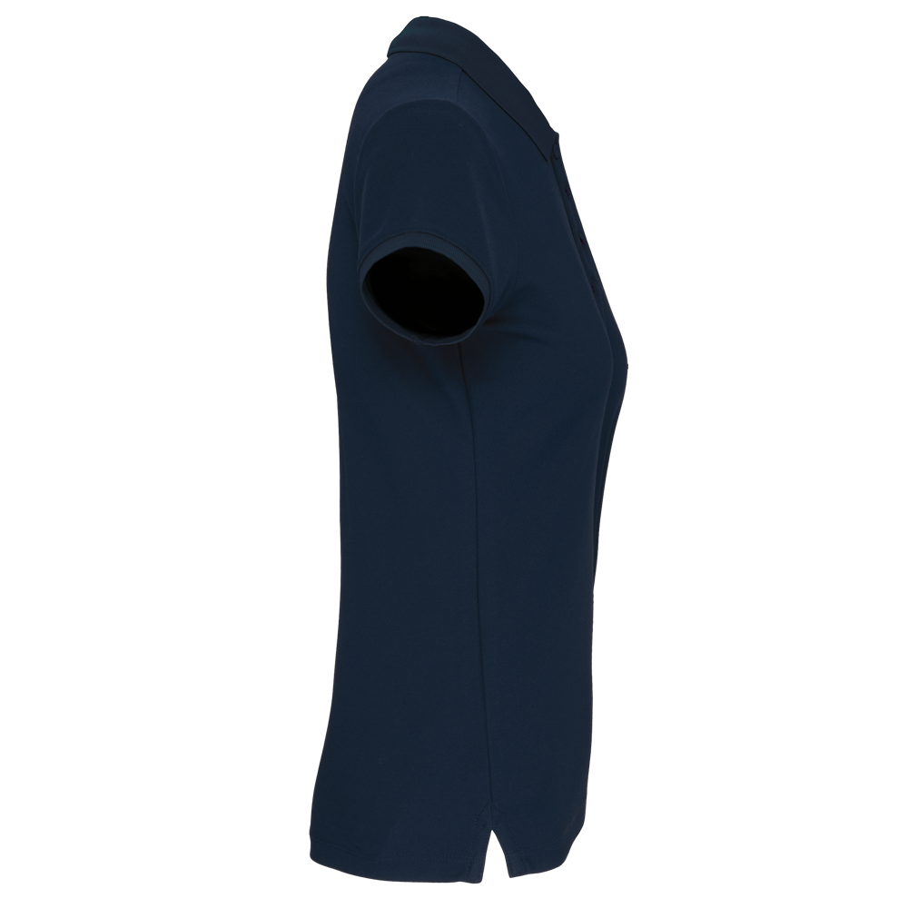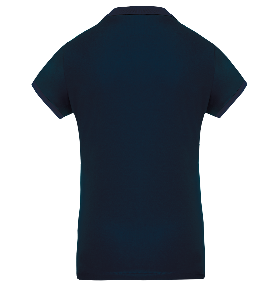 100% piquépolyester Cool Plus®. Getailleerde snit en moderne look. Kraag en mouwuiteinden in contrasterende ribboord. Knoopsluiting met 4 knopen (contrasterend of effen, afhankelijk van het model). Zijsplitten.