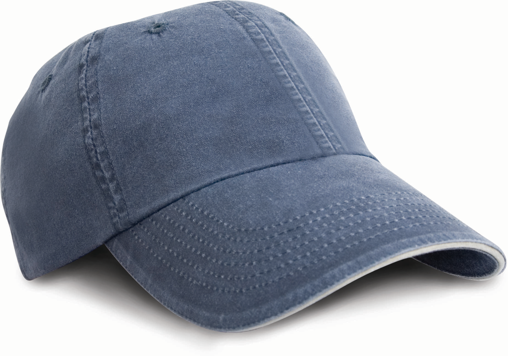 100% twillkatoen. 6 panelen. Zachte, voorgewassen pet. Zesvoudige naad op de sandwichklep. Verluchtingsgaatjes. Verstelbare sluiting aan de achterkant met metalen gesp. Geschikt voor borduring en bedrukking.