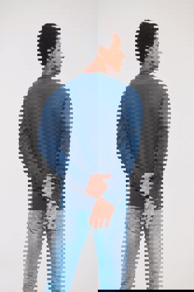 80% ringgesponnen gekamd katoen / 20% polyester en de buitenkant is 100% katoen (3-laagse stof) voor een optimaal drukoppervlakte. Nektape in visgraatmotief. Rechte snit. Set-in mouwen. Breed ribboord aan de taille en de mouwuiteinden. Zijnaden. Overstiksels aan de mouwsgaten, polsen en taille.