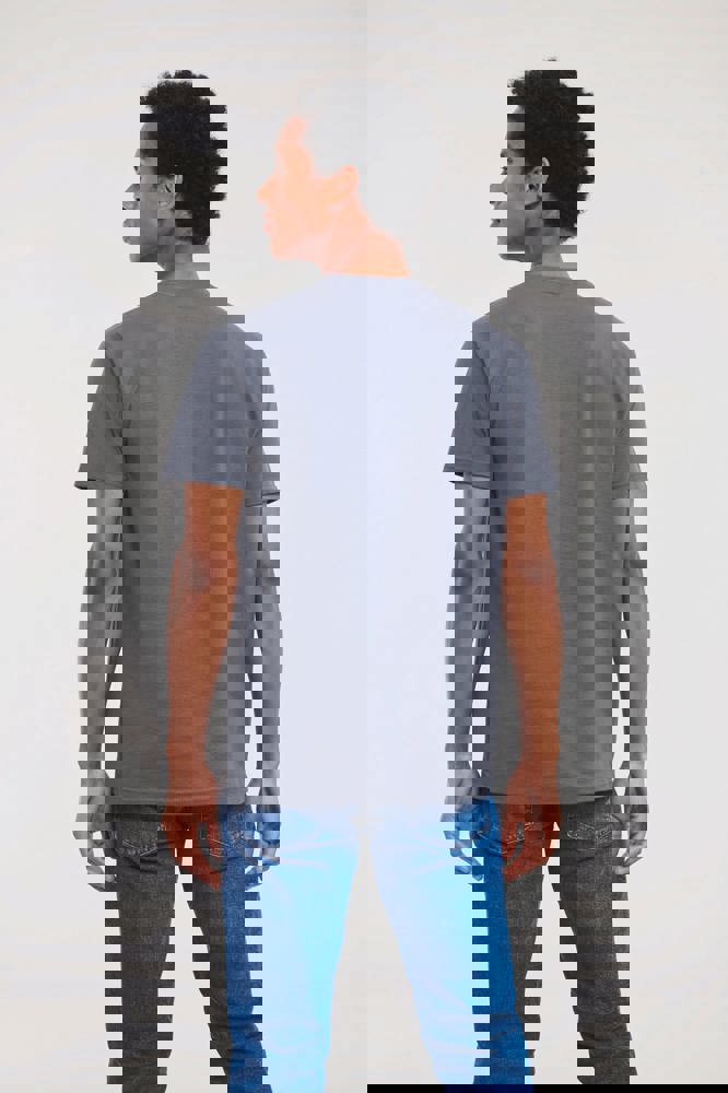 100% ringgesponnen katoen (Light Oxford: 93% katoen / 7% vicose). Nektape van schouder tot schouder. Tubulaire snit. Kraag 1x1 rib. Afwerking met dubbele stiksels.