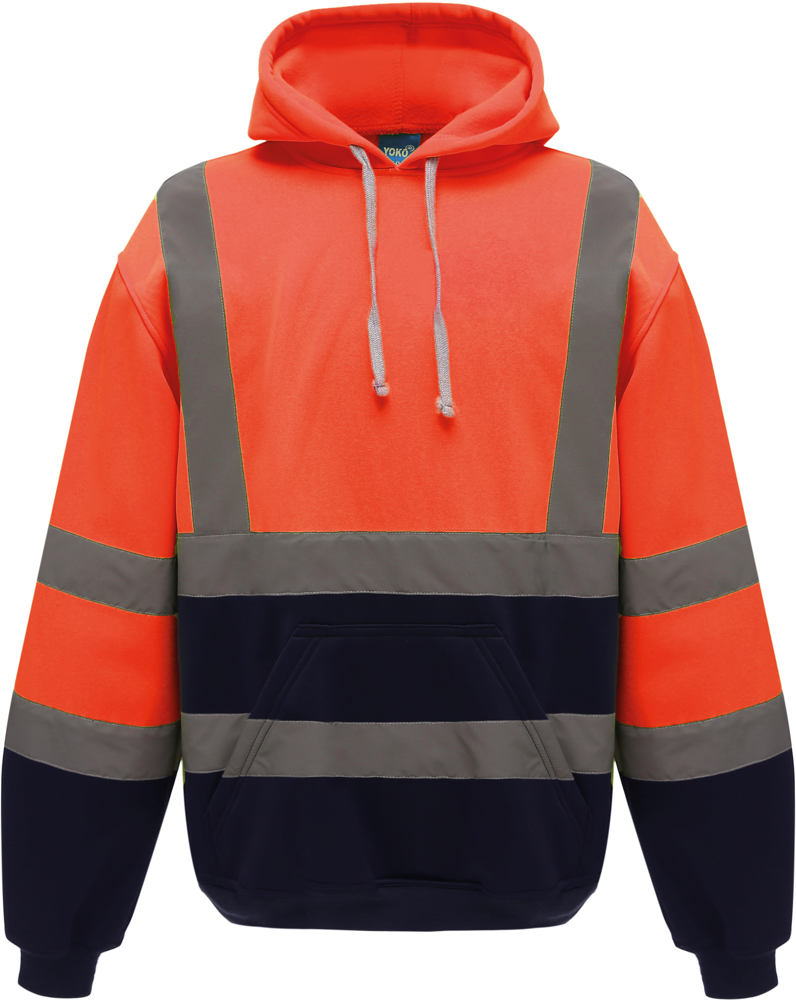 100% niet-pluizend polyester. 2 reflecterende stroken (5 cm breed) rond het lichaam en op de armen. Een reflecterende band op iedere schouder. Nektape. Capuchon (in het verlengde van de kraag) met aanrijgkoordje. Ingezette mouwen. Kangoeroezak aan de voorkant. Uiteinden van mouwen en kledingstuk in ribboord. Dubbel stiksel aan kraag, uiteinden van mouwen en kledingstuk. Norm EN ISO 20471 van klasse 3 : Hi-Vis Yellow, Hi-Vis Orange, Hi-Vis yellow/Navy, Hi-Vis Orange/Navy.